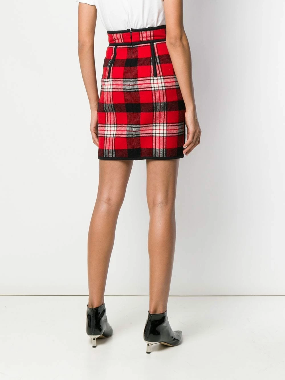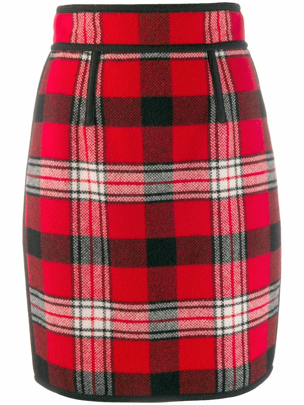 Jupe crayon à carreaux en laine Dsquared2 avec taille haute, taille resserrée et fermeture zippée latérale. Couleur : rouge.
