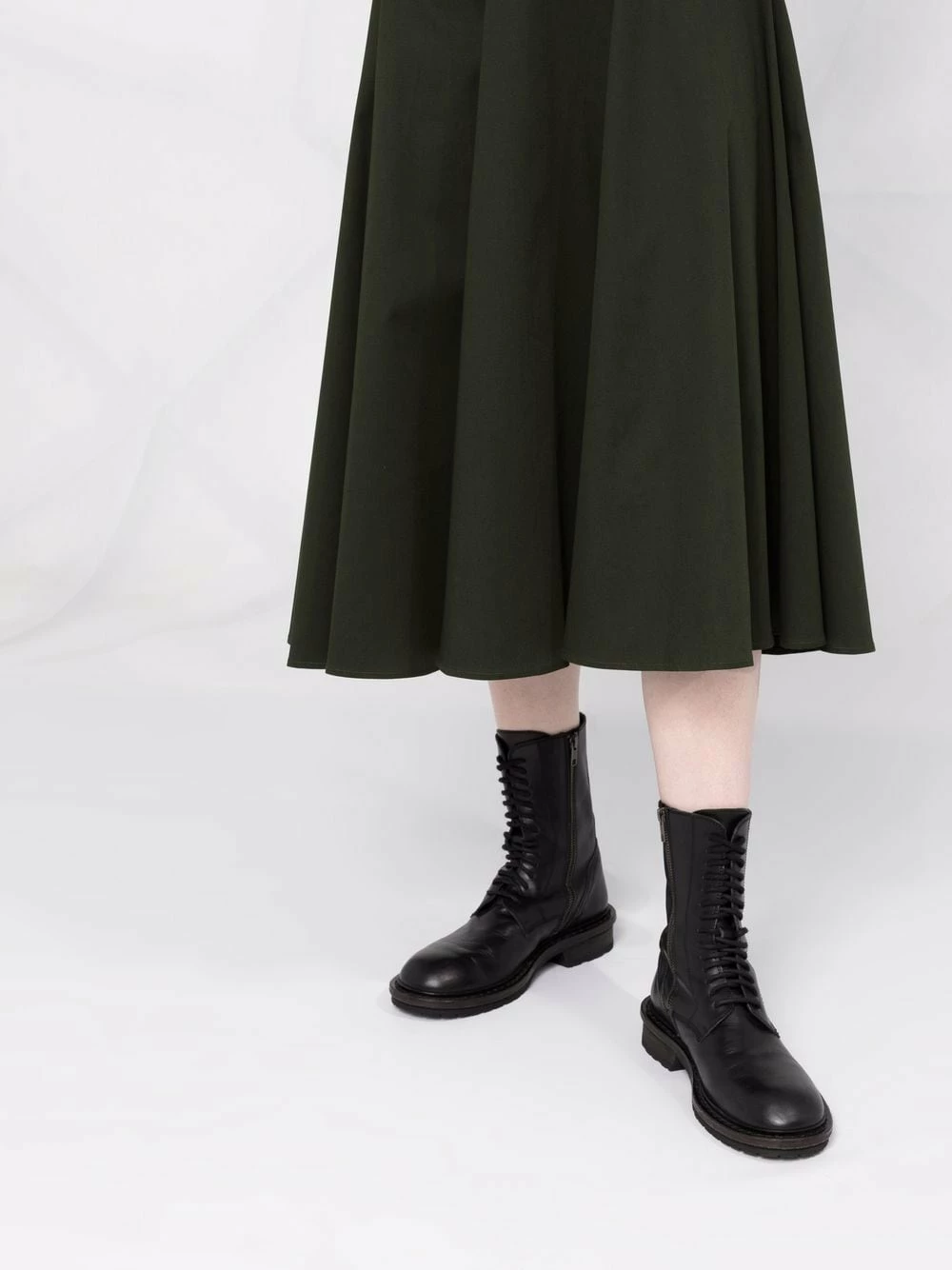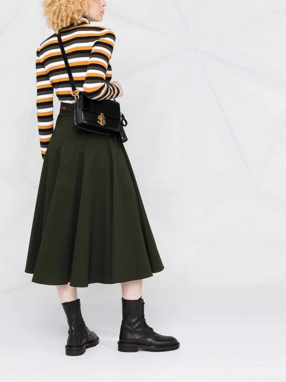 Coupe trapèze, taille haute, coupe mi-longue. Couleur : marron. Matière : coton.