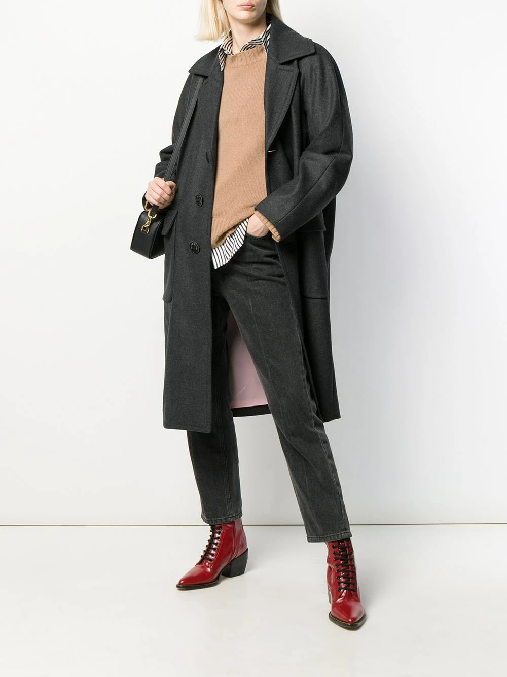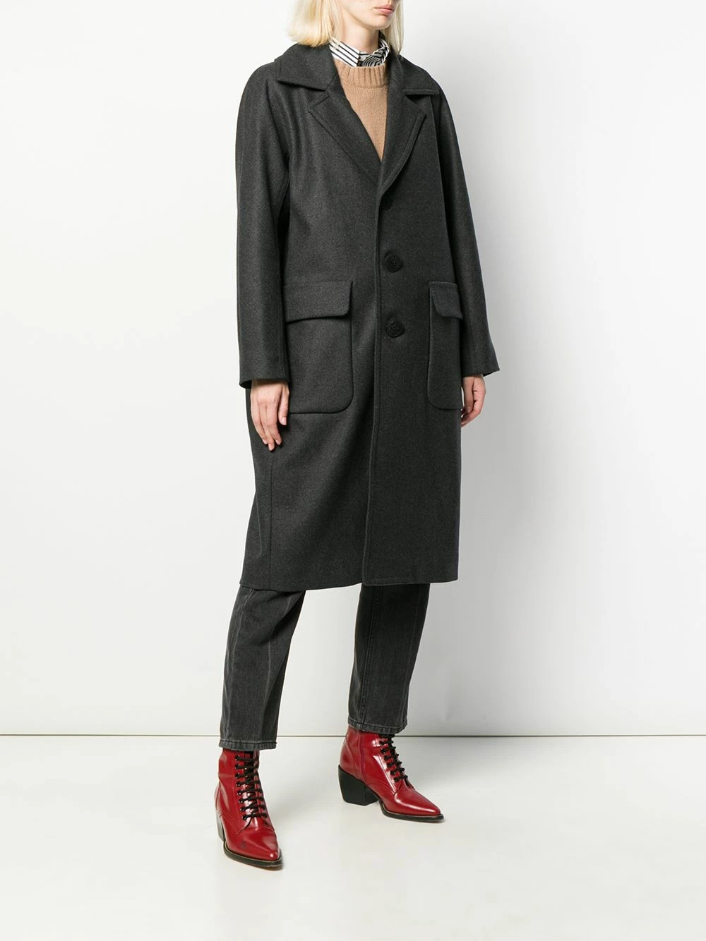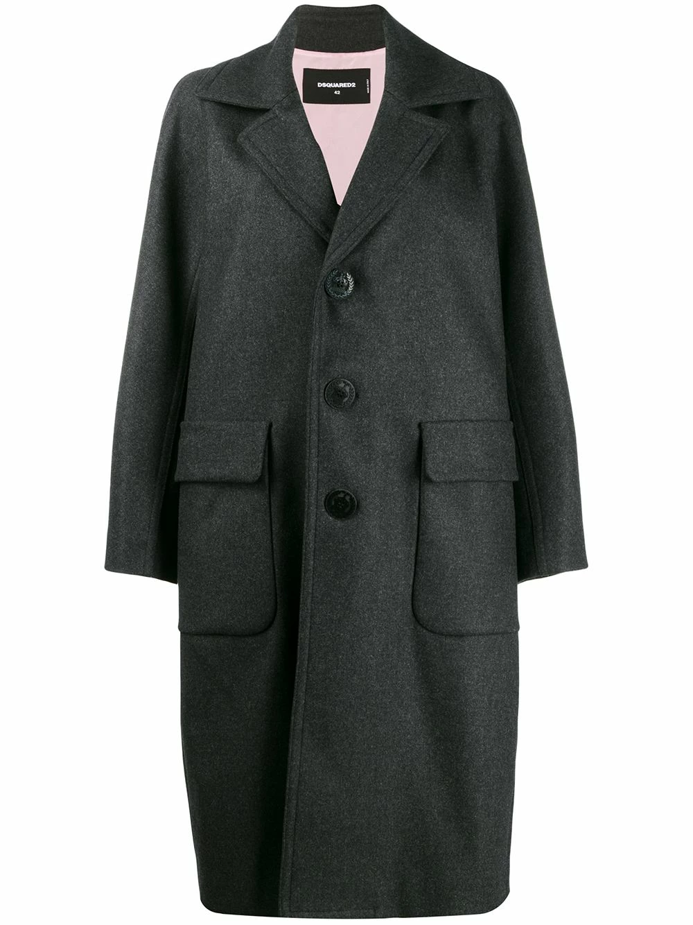 Manteau à col à revers oversize Dsquared2 avec boutonnière sur le devant, poches devant à rabat et longueur medium. Couleur : gris.