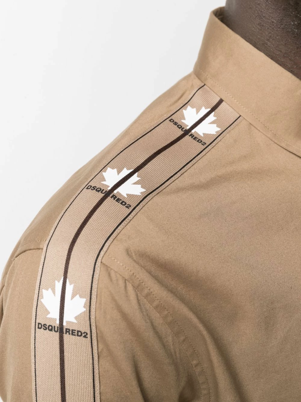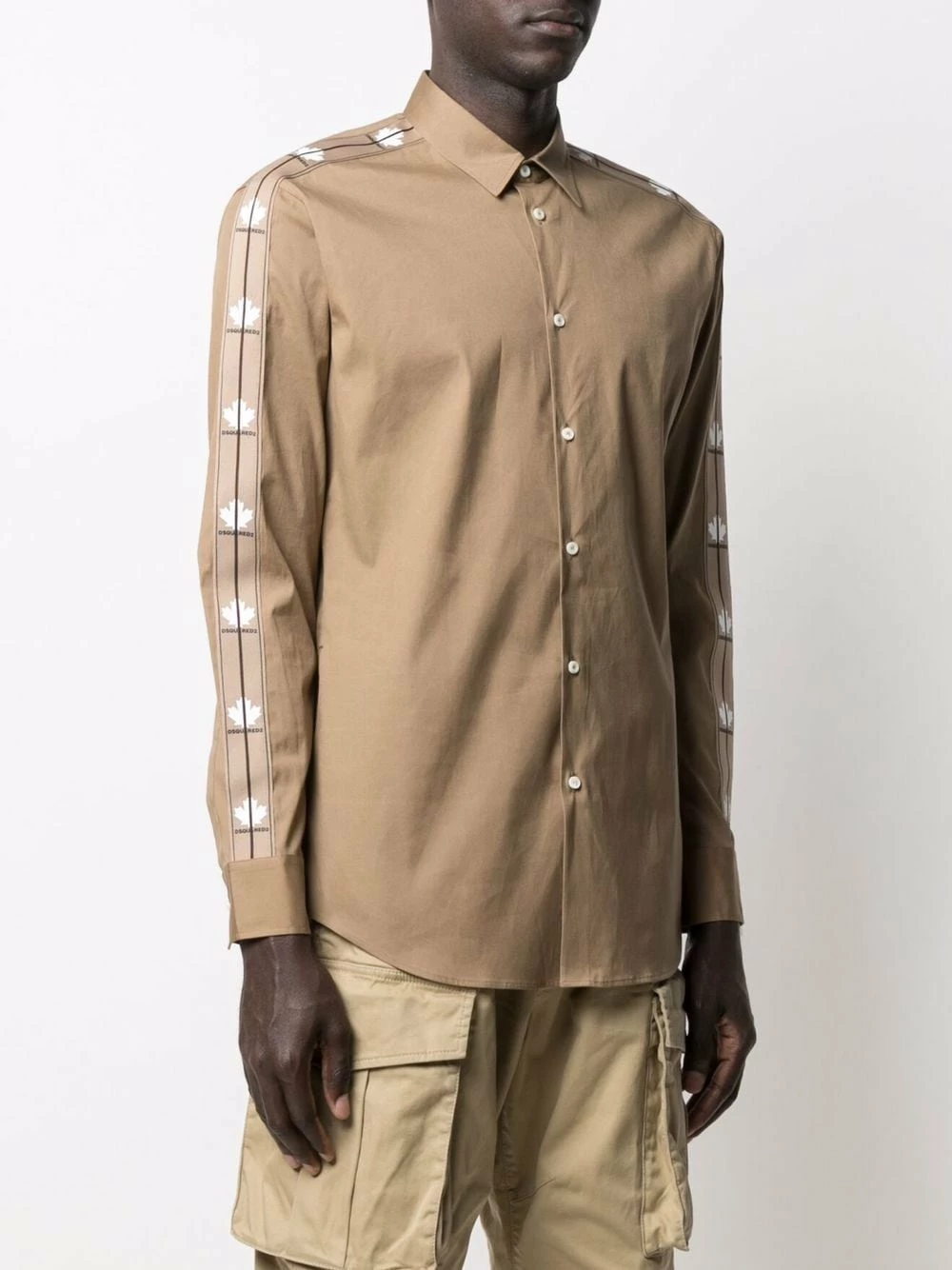 Bride à logo imprimé, col classique, boutonnière sur le devant, manches longues, ourlet incurvé.