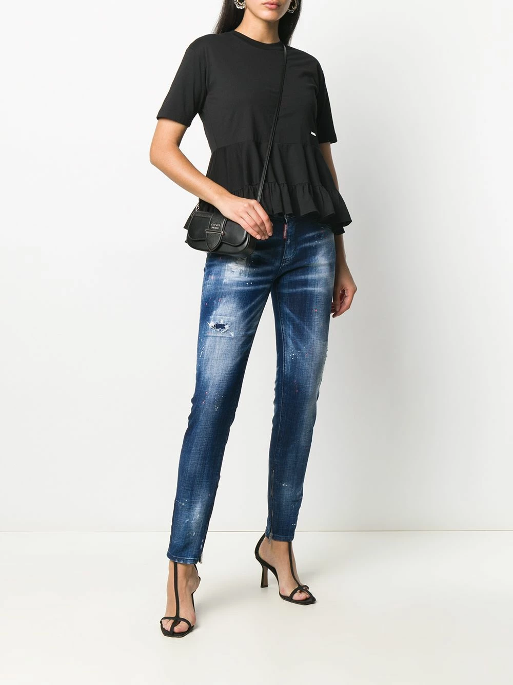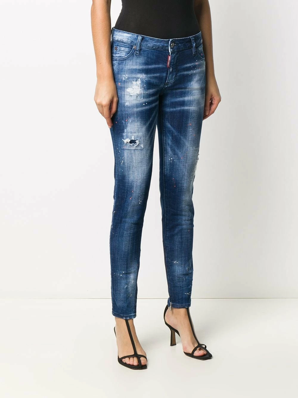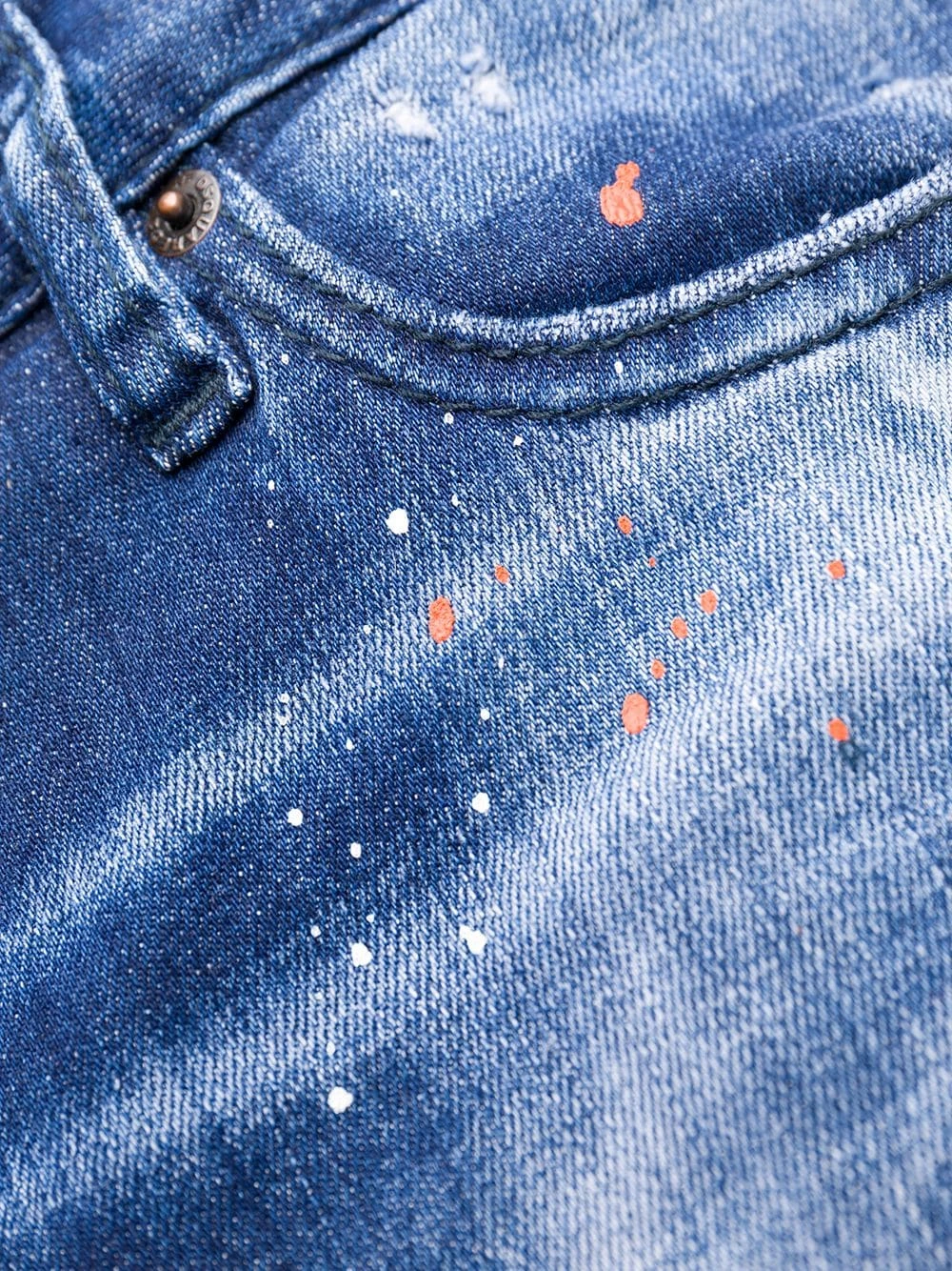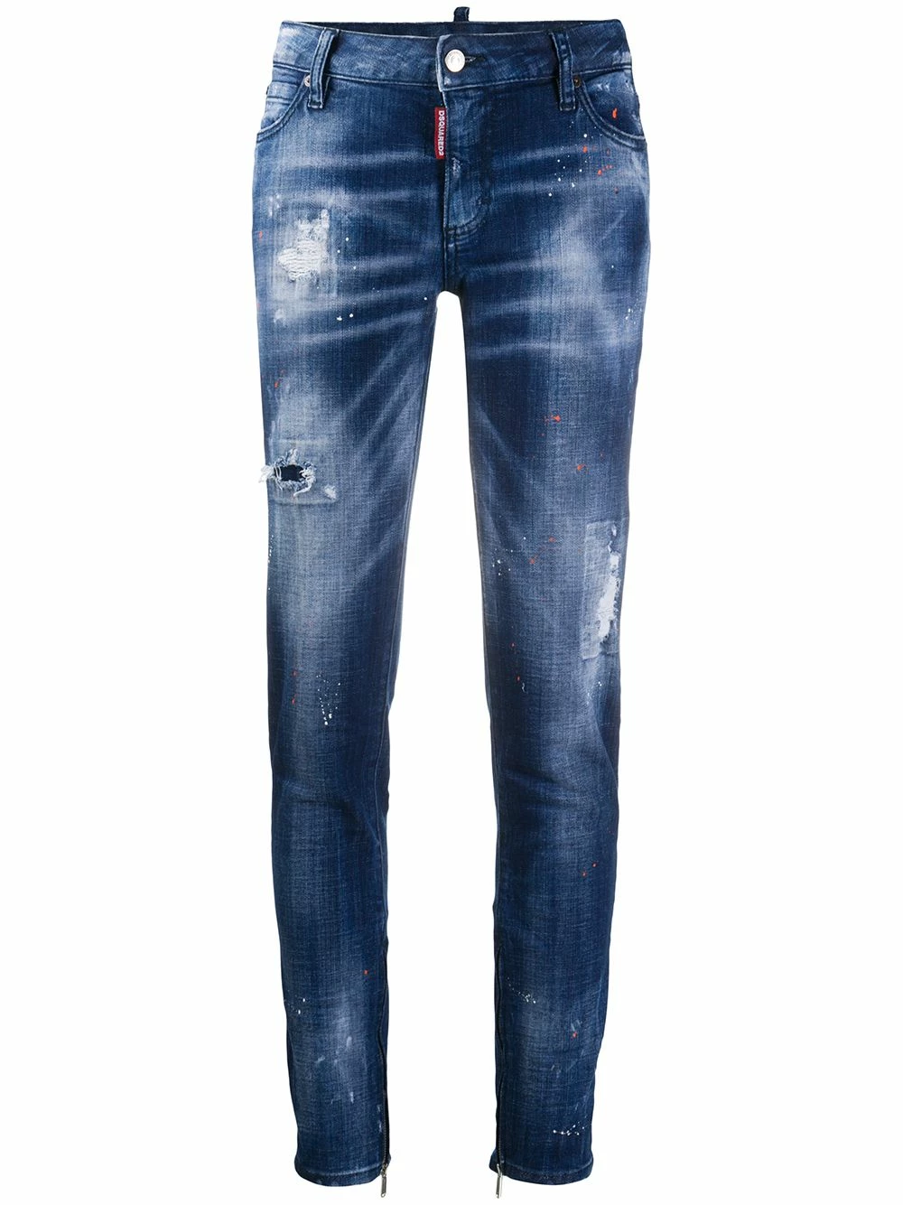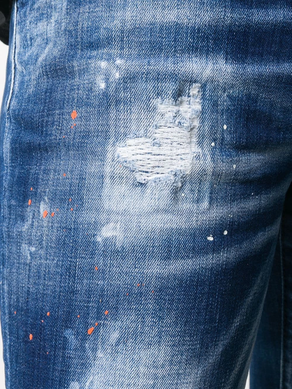Taille normale, coupe fuselée, coupe skinny, effet usé, fermeture boutonnée. Matière : coton.