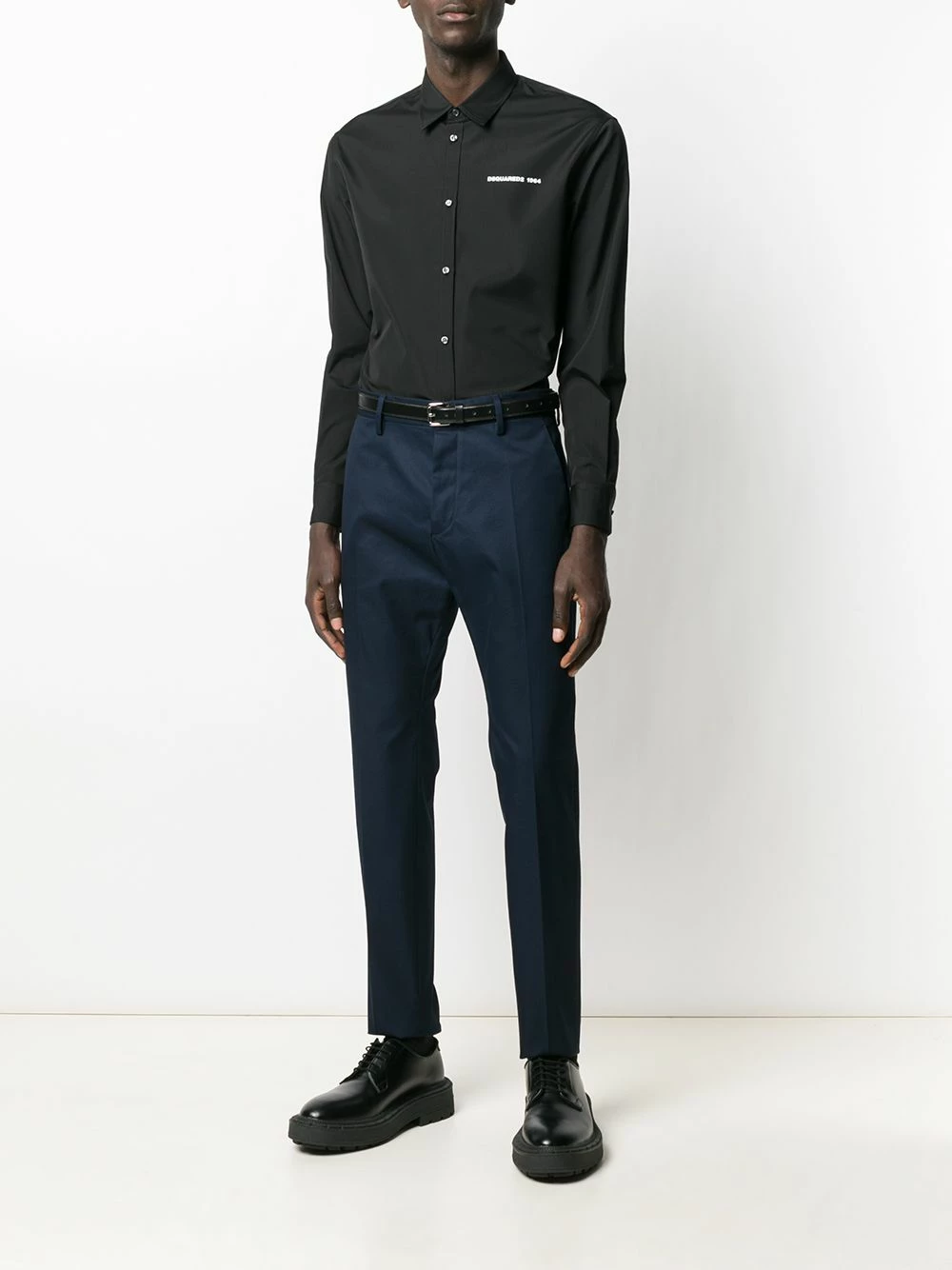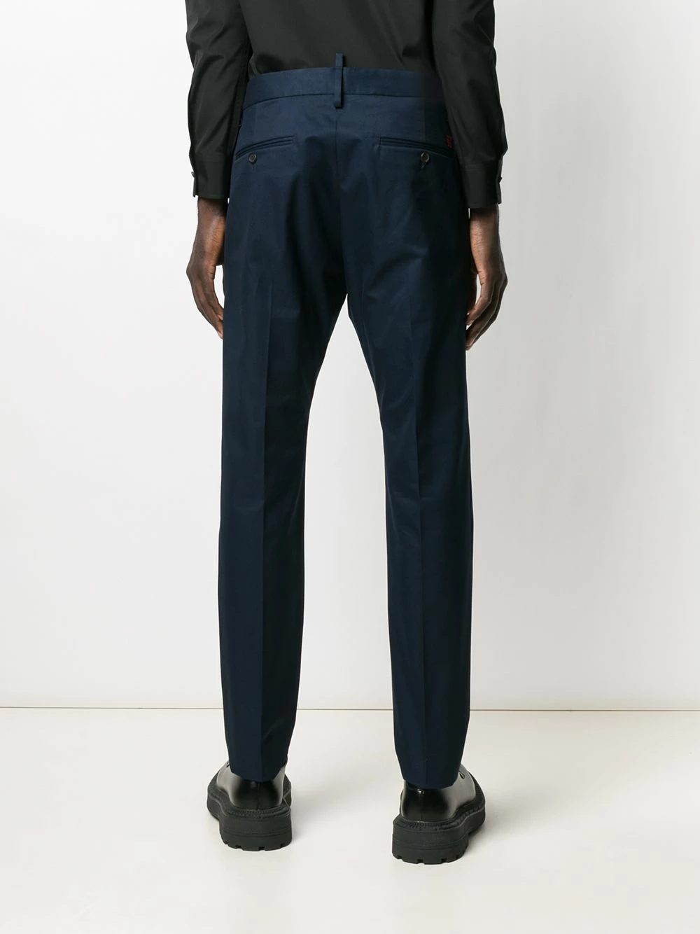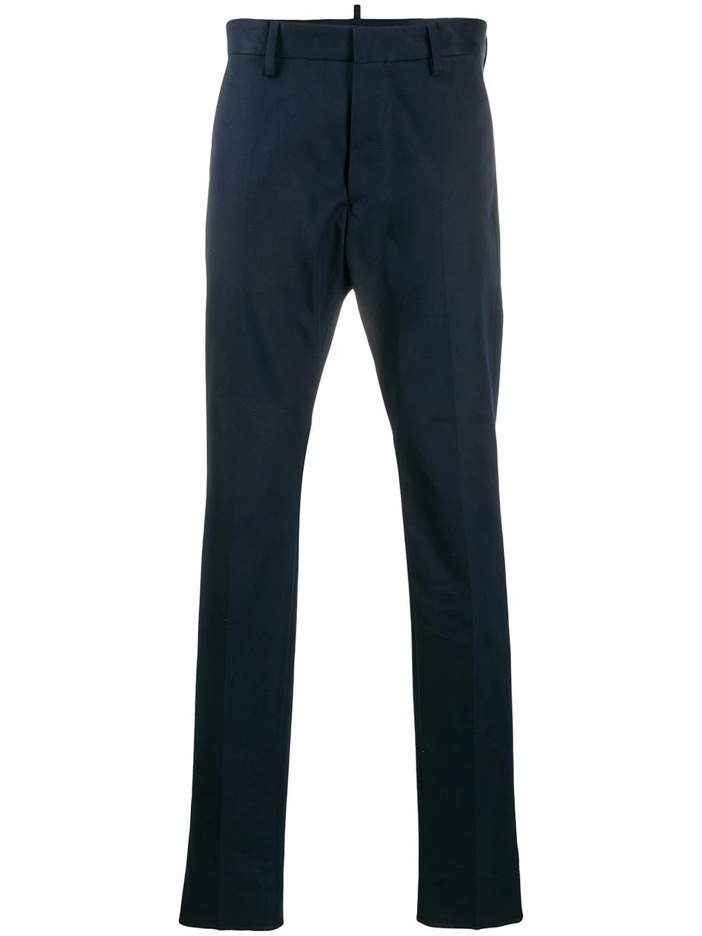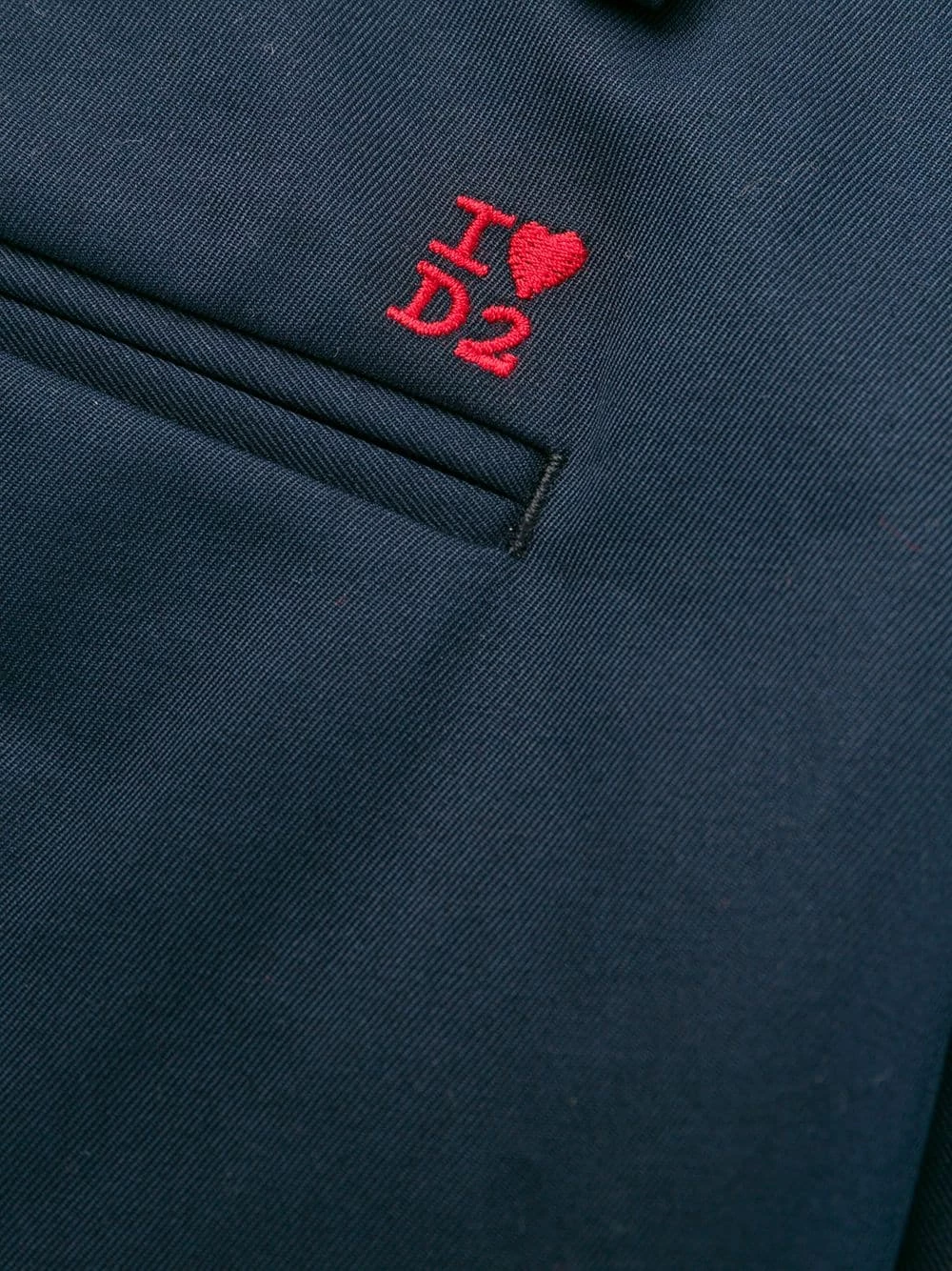 Pantalon fuselé en coton à logo brodé Dsquared2 avec passants de ceinture, fermeture sur le devant, poches latérales fendues, deux poches arrière passepoilées et boutonnées, design ajusté, coupe droite et logo brodé à l’arrière. Couleur: bleu marine.