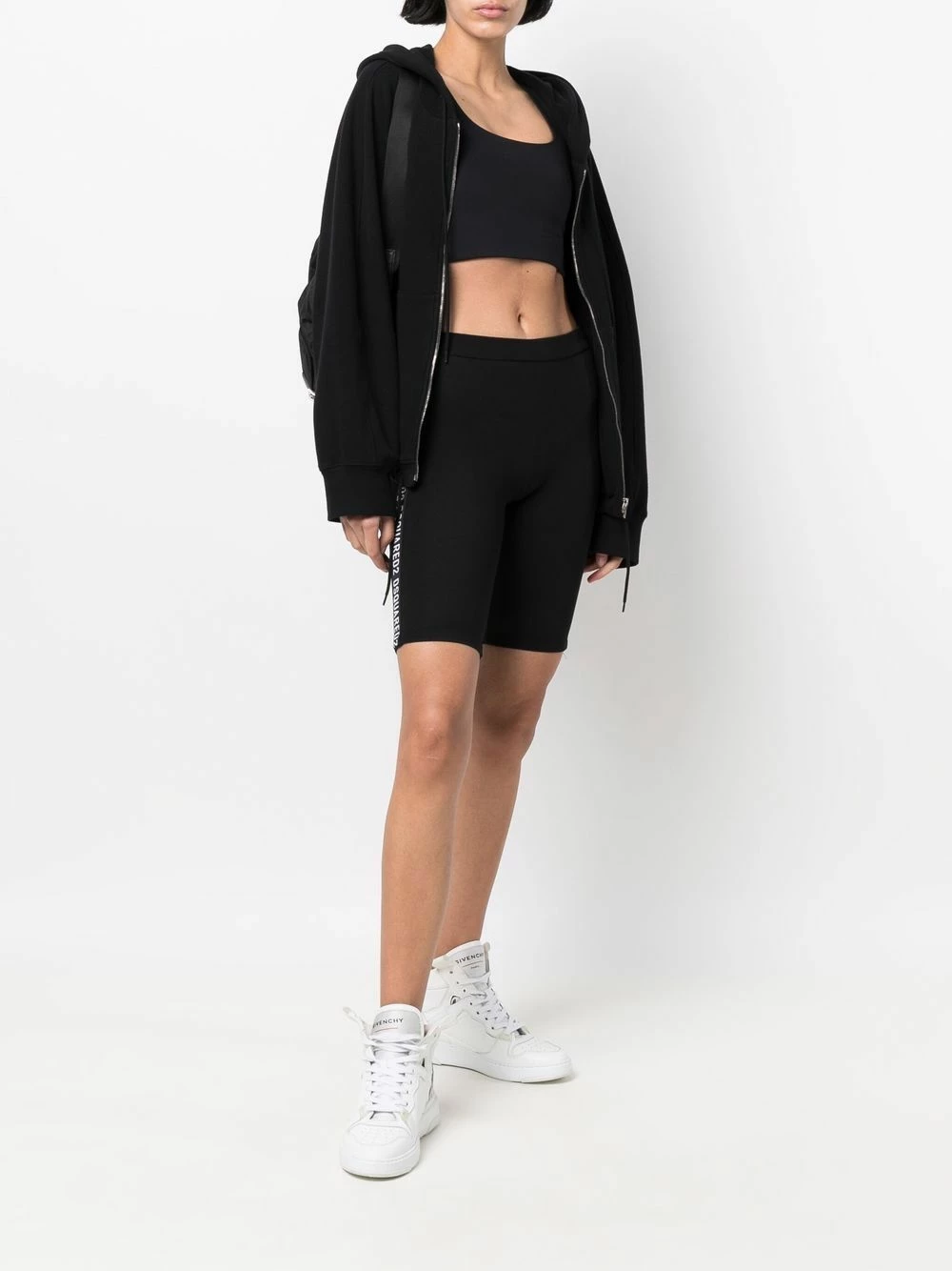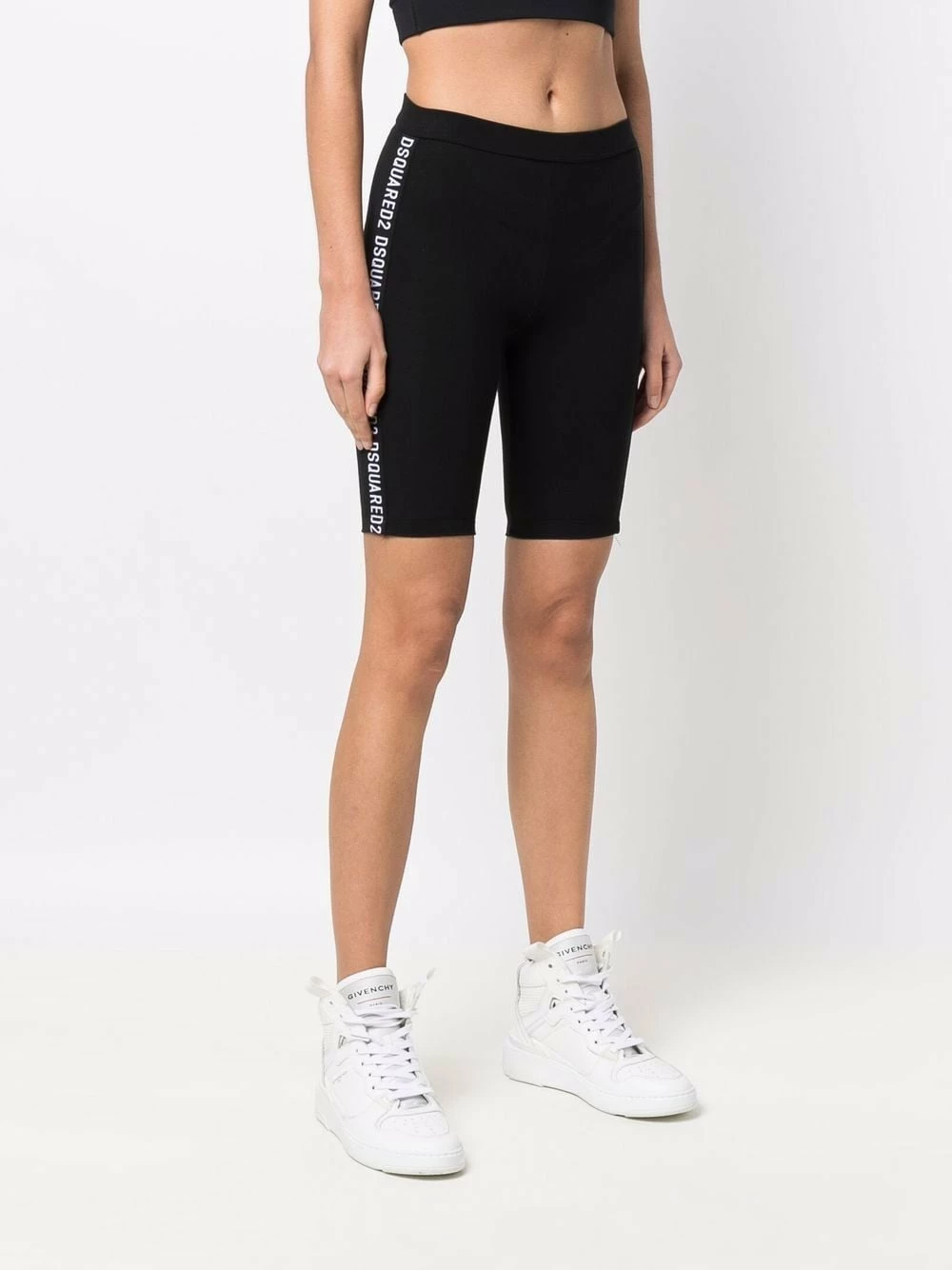 Noir, coton stretch, finition à bande logo, longueur au dessus du genou.