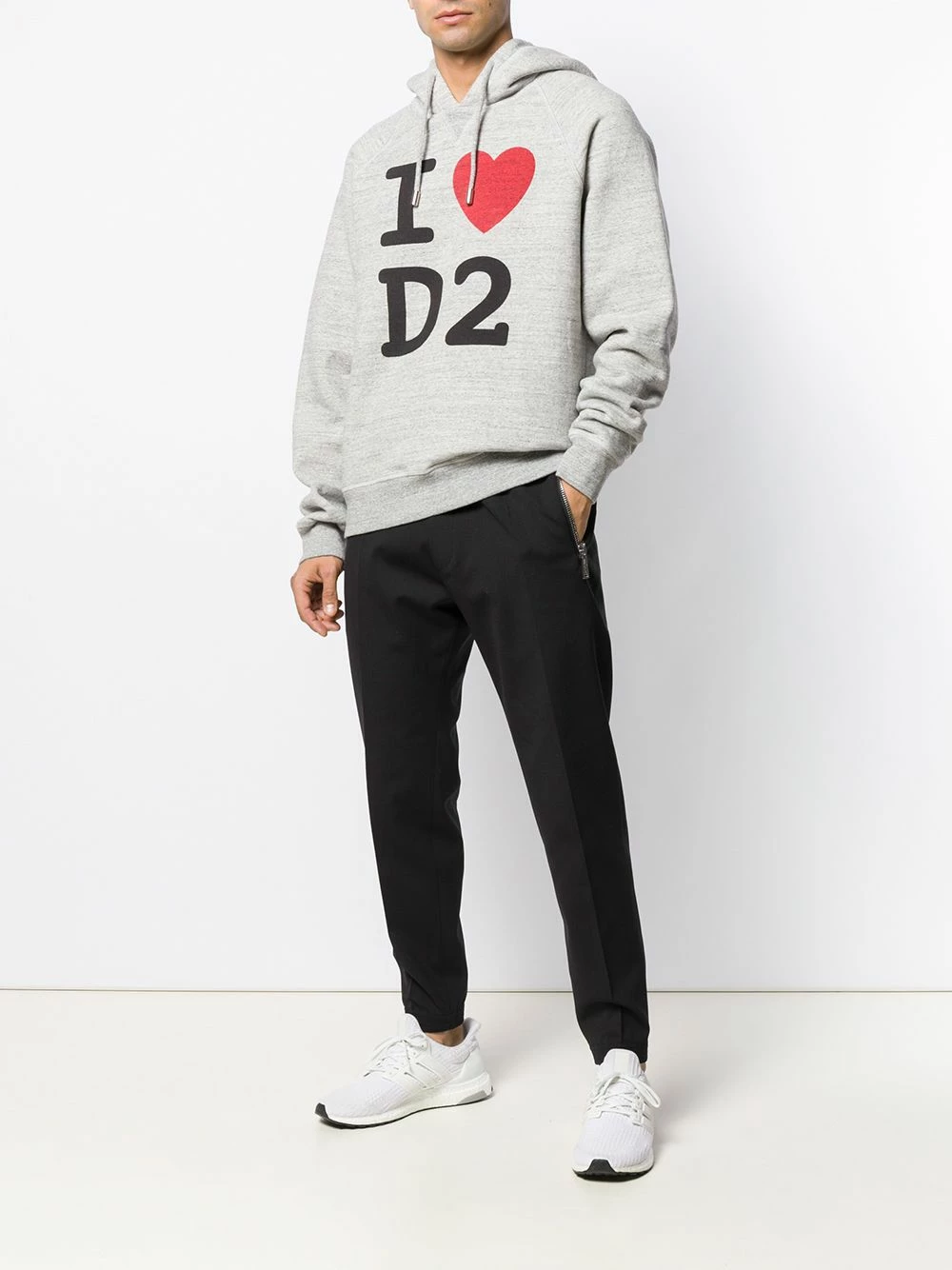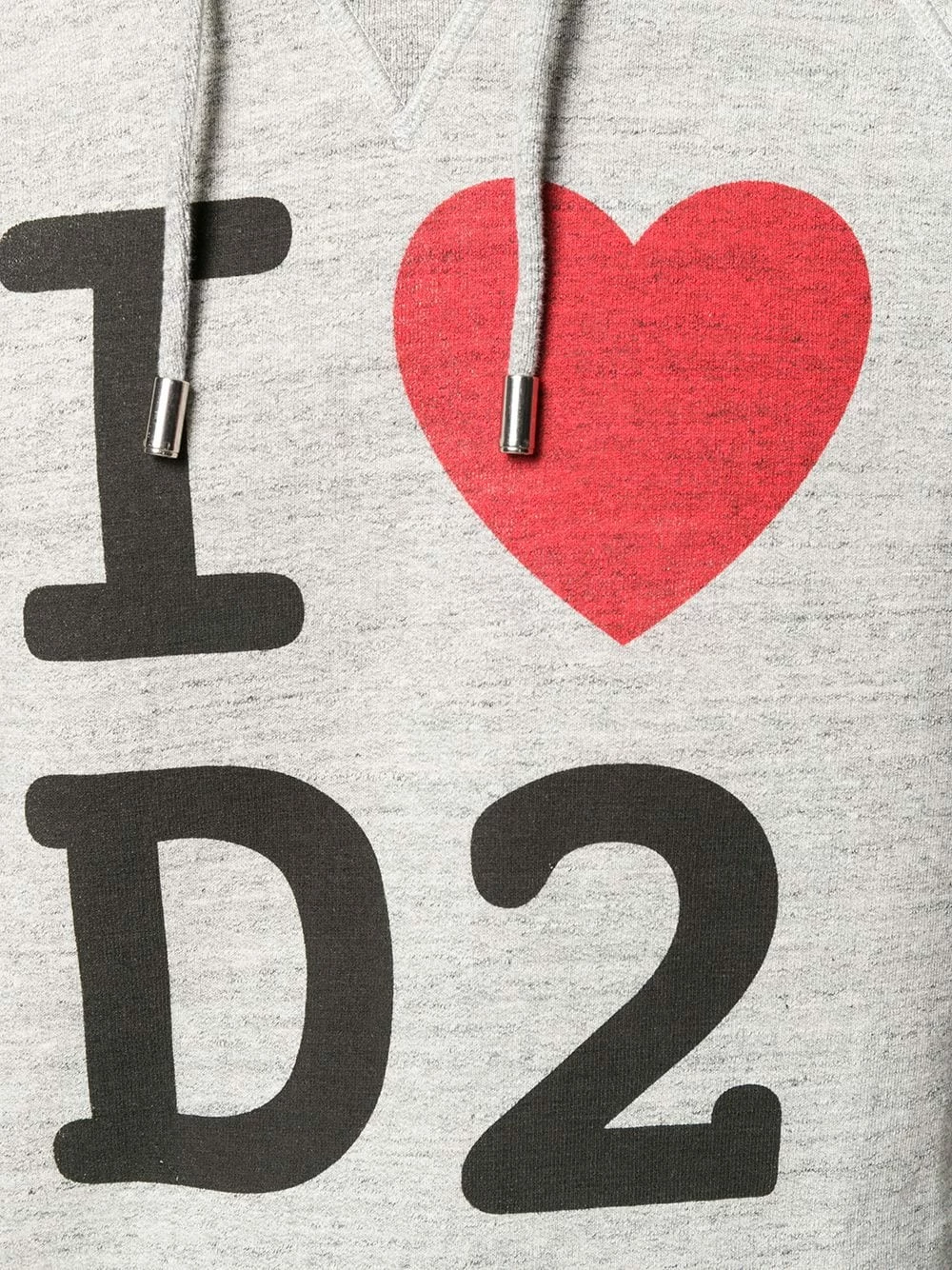 Sweat à capuche I Love D2 en coton Dsquared2 avec encolure ras du cou, capuche à lien de resserrage, manches longues, imprimé devant et ourlet et poignets nervurés. Couleur : gris.