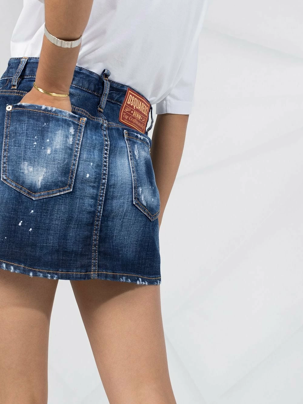 Effet usé, patch logo sur l’arrière, fermeture boutonnée, passants de ceinture, 5 poches classiques. Couleur : bleu.