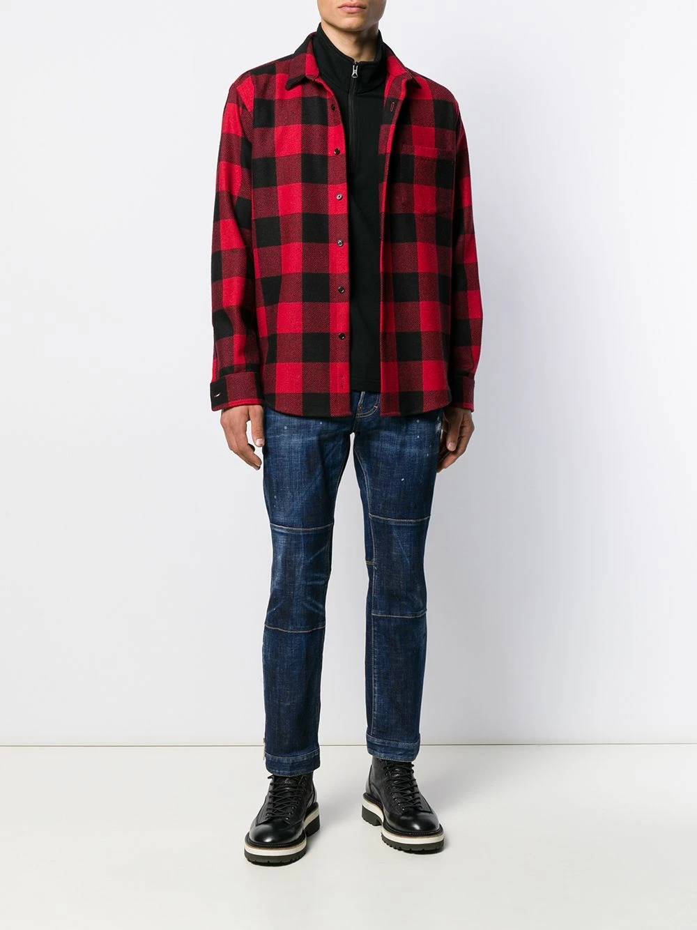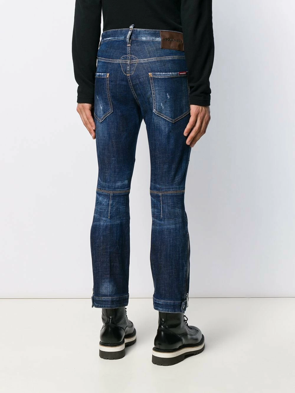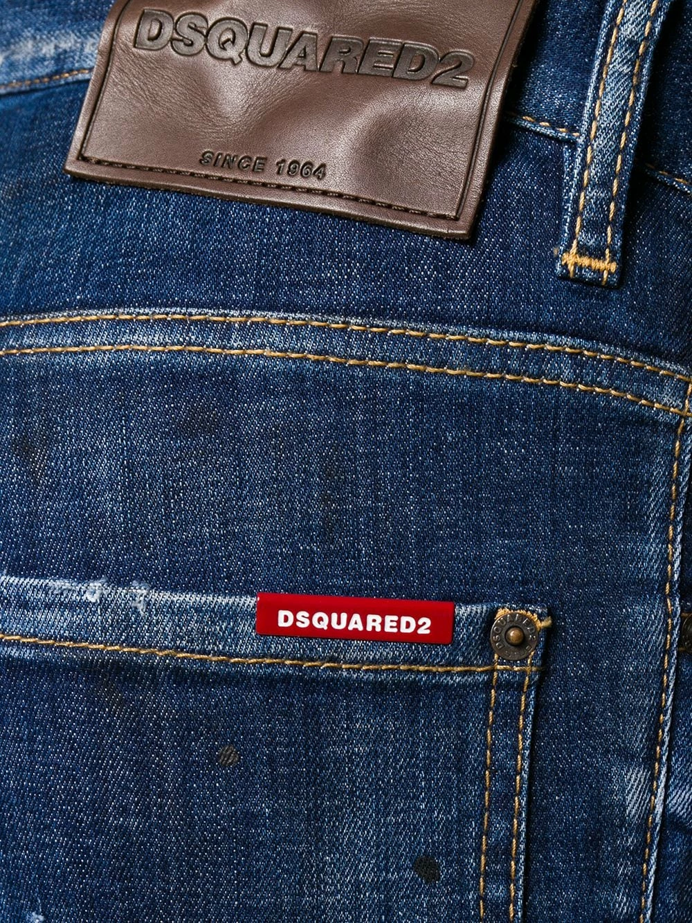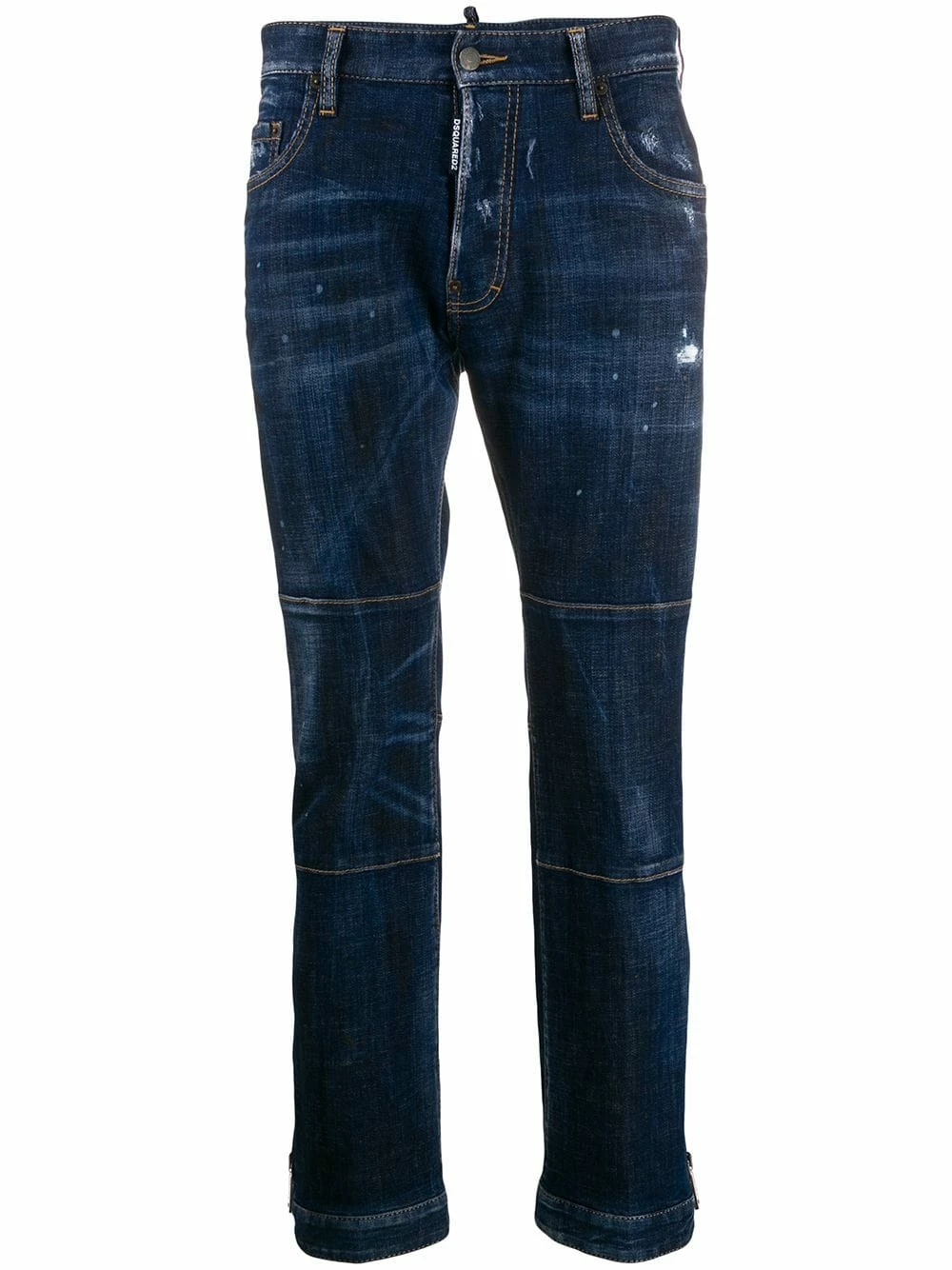 Jean crop à design patchwork Dsquared2 avec passants de ceinture à la taille, coupe classique cinq poches, bouton et zip et patch logo en cuir sur l’arrière.