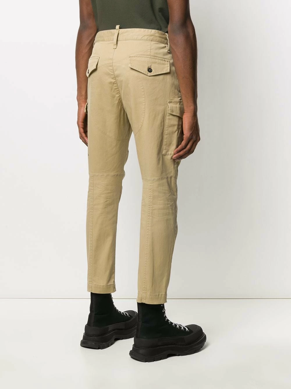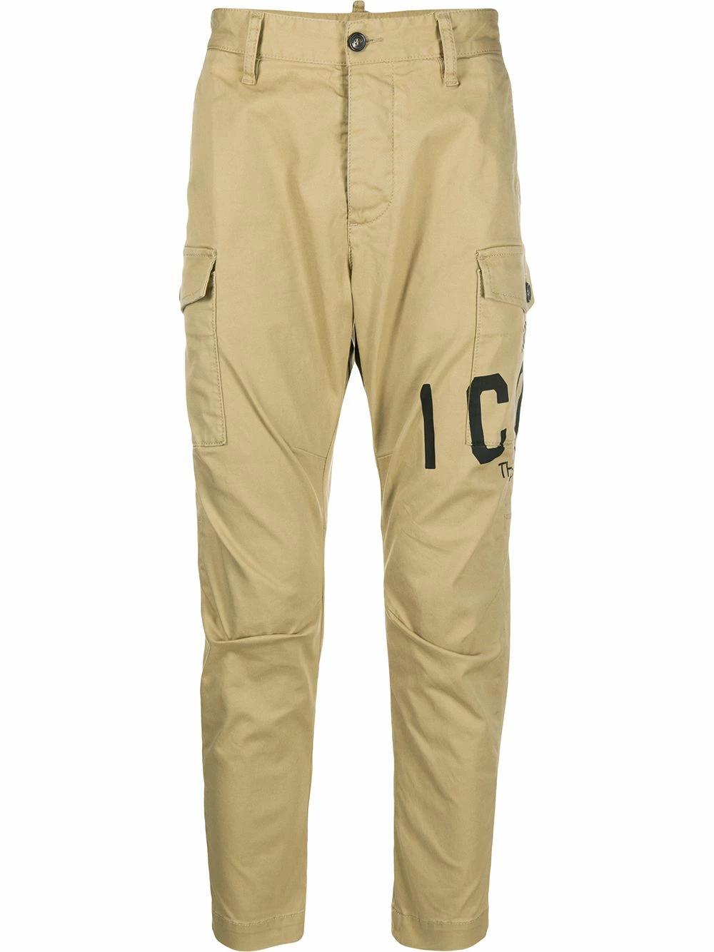 Pantalon cargo à logo imprimé en spandex/élasthanne Dsquared2 avec boutonnière, passants de ceinture, poches latérales, poches latérales à rabat, logo imprimé, coupe fuselée, longueur crop et poches arrière à rabat.