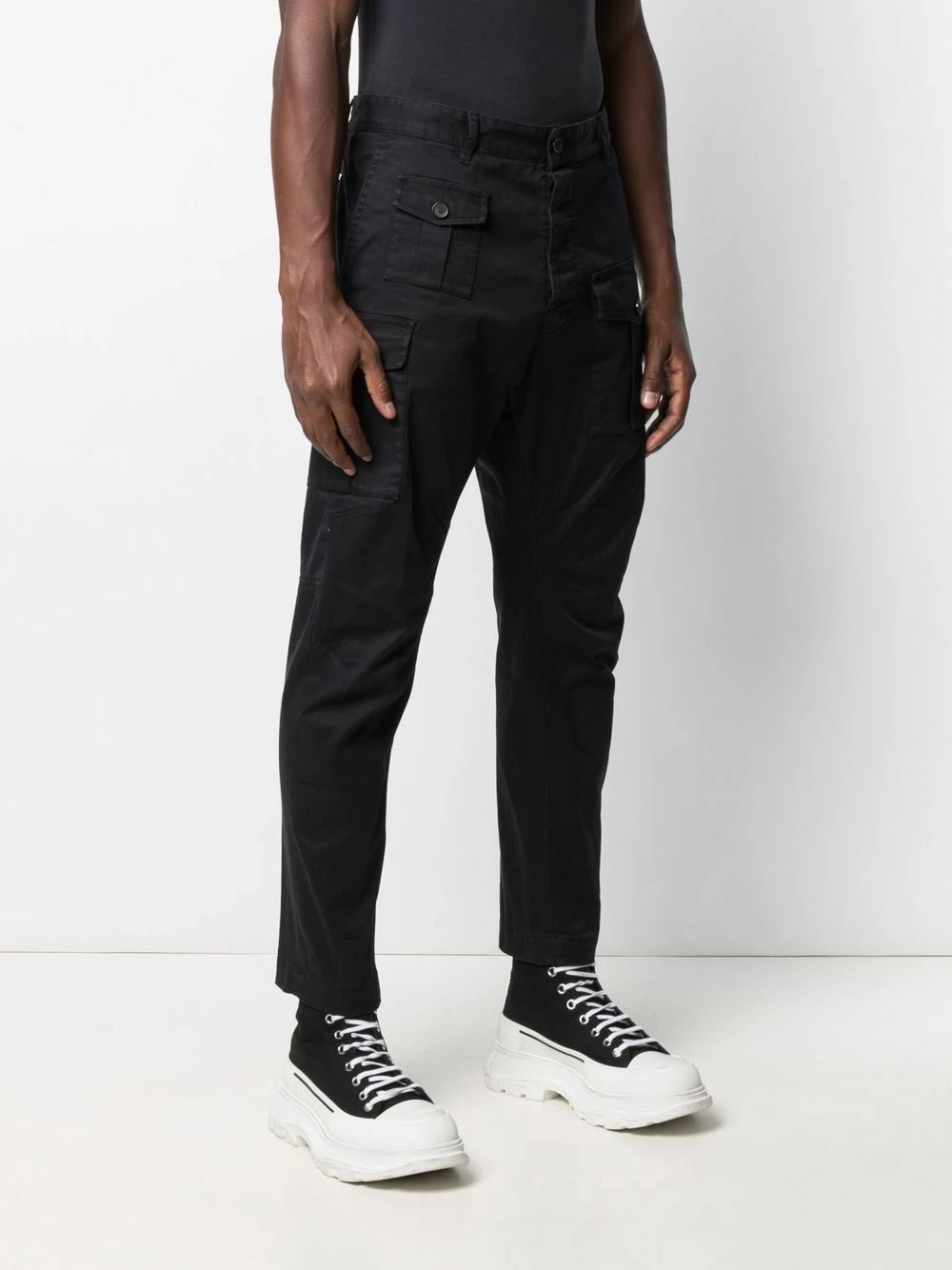 Passants de ceinture, fermeture à zip et boutons sur le devant, coutures ton sur ton, poches cargo multiples, coupe fuselée.