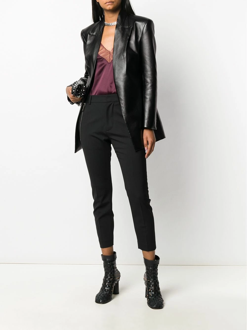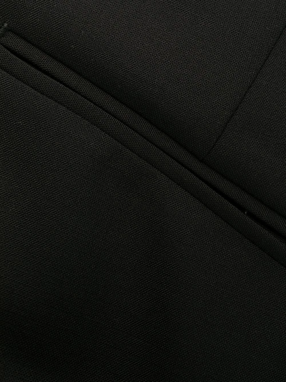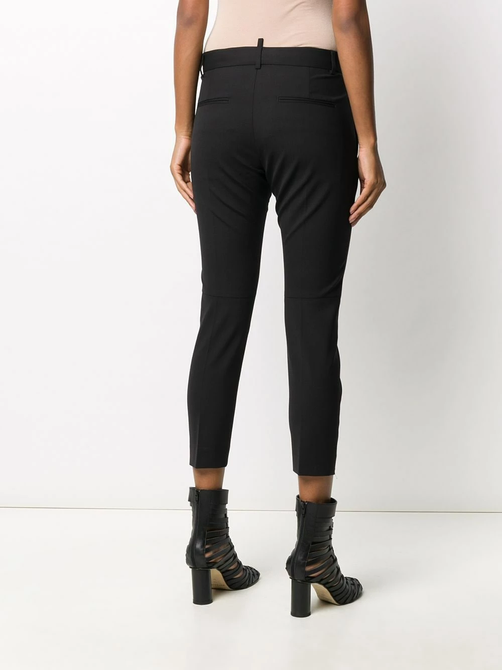 Poches à fermeture zippée devant, longueur crop, fermeture dissimulée sur le devant, poches arrière passepoilées. Couleur : noir.