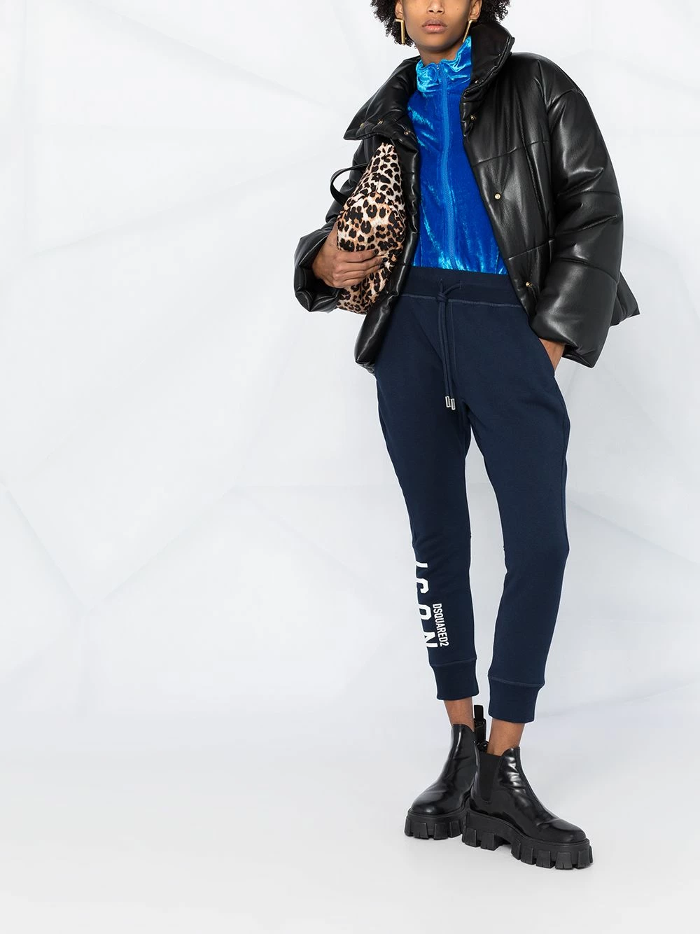 Slogan imprimé, coupe ajustée, longueur crop, ceinture élastique, fermeture à lien de resserrage, deux poches latérales passepoilées. Matière : coton.