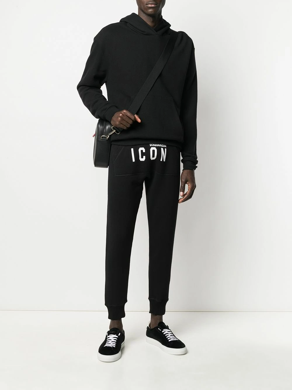 Pantalon de jogging à logo ICON en coton Dsquared2 avec ceinture élastique, poche kangourou, coupe fuselée, poignets élastiqués et longueur classique.