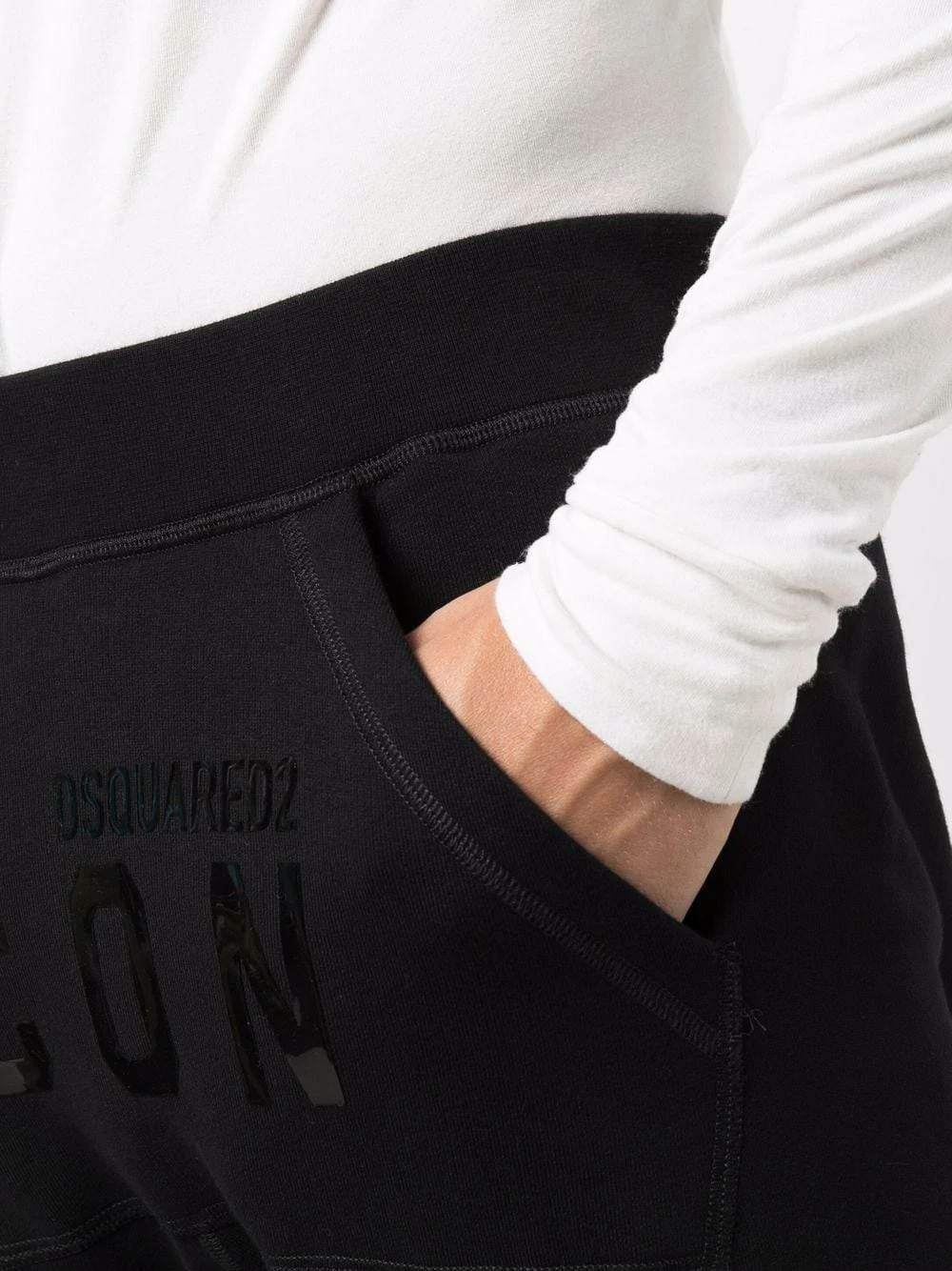 Polaire, logo imprimé sur le devant, poches plaquées latérales, coupe fuselée, ceinture élastique. Couleur : noir. Matière : coton.