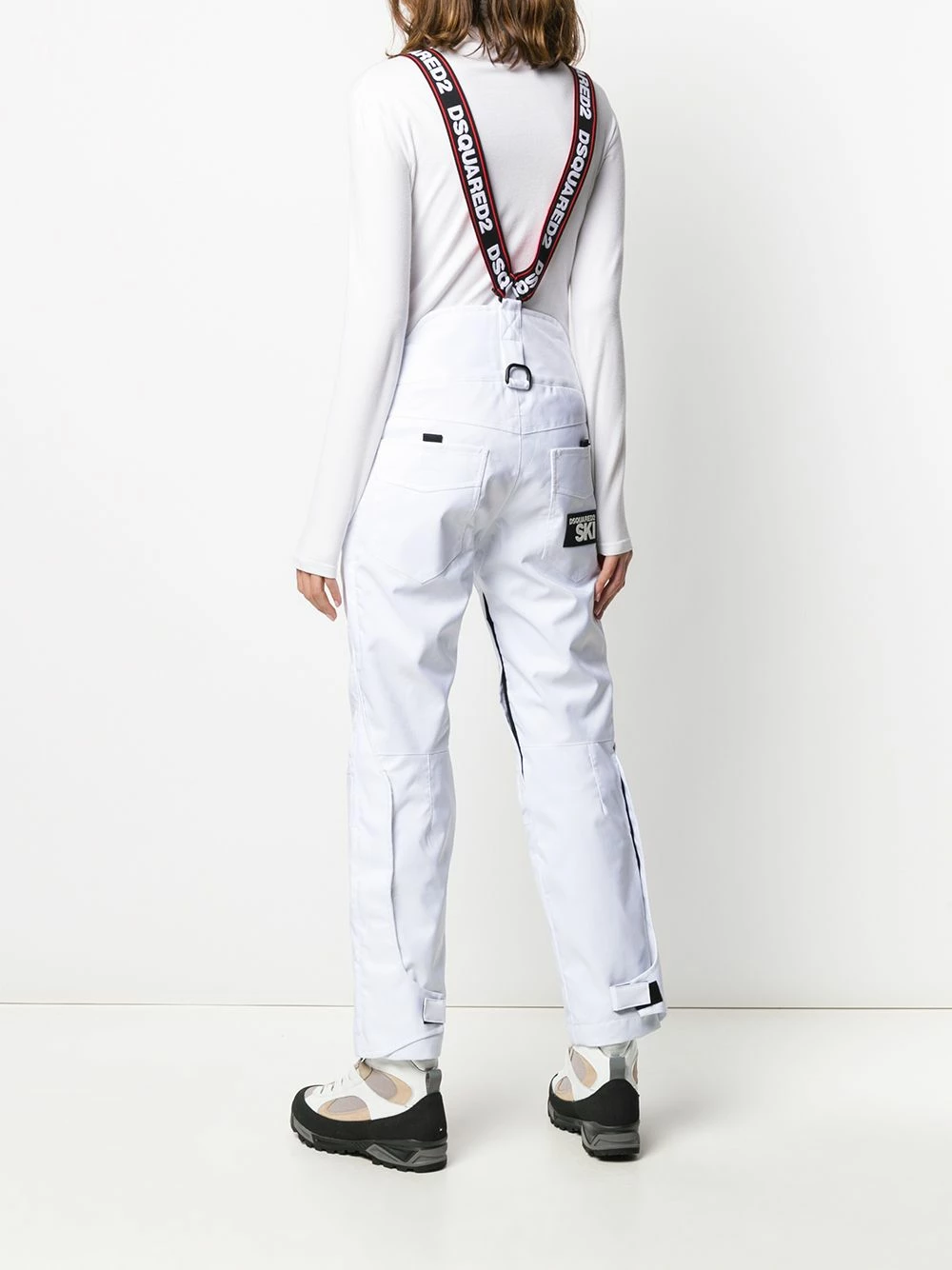 Pantalon de ski à bretelles Dsquared2 avec bretelles de salopette, fermeture zippée devant et poche arrière. Couleur : blanc.