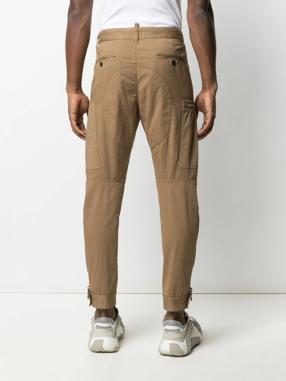 Passants de ceinture, fermeture à zip et boutons sur le devant, poches à fermeture zippée devant, poches latérales fendues, deux poches arrières boutonnées, poignets zippés, poignets boutonnés. Matière : coton mélangé.