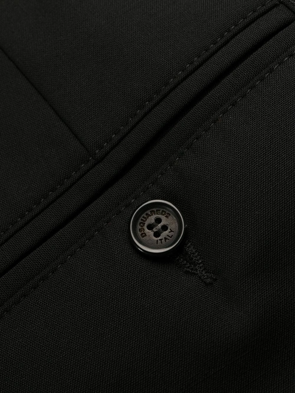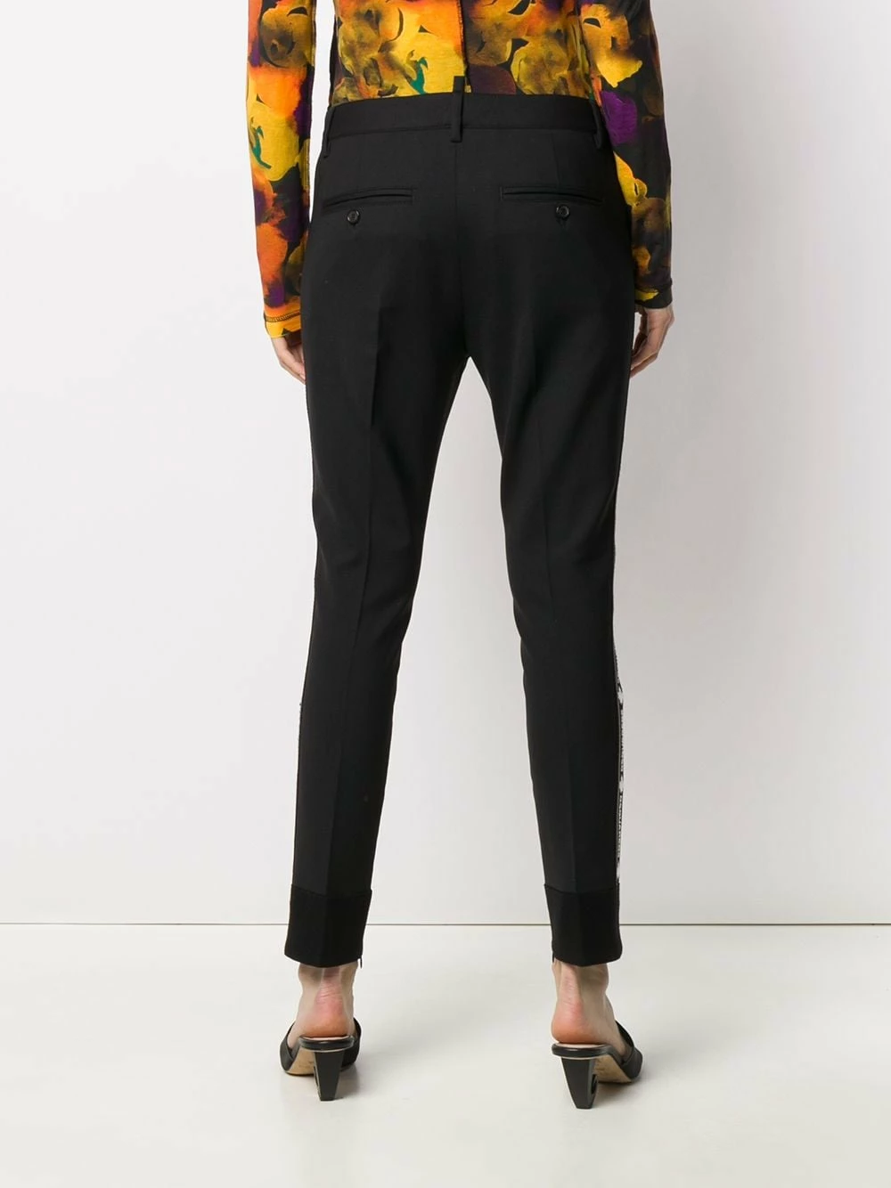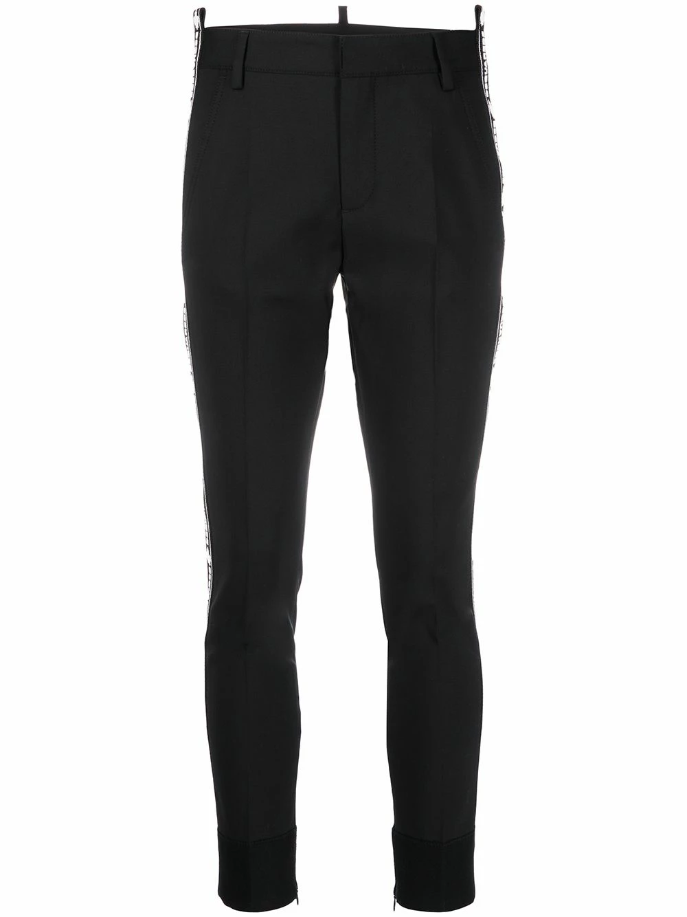 Pantalon slim à logo imprimé en laine Dsquared2 avec passants de ceinture, fermeture devant dissimulée, poches latérales, poches arrière passepoilées, coupe slim et ourlet retroussé. Couleur : noir.