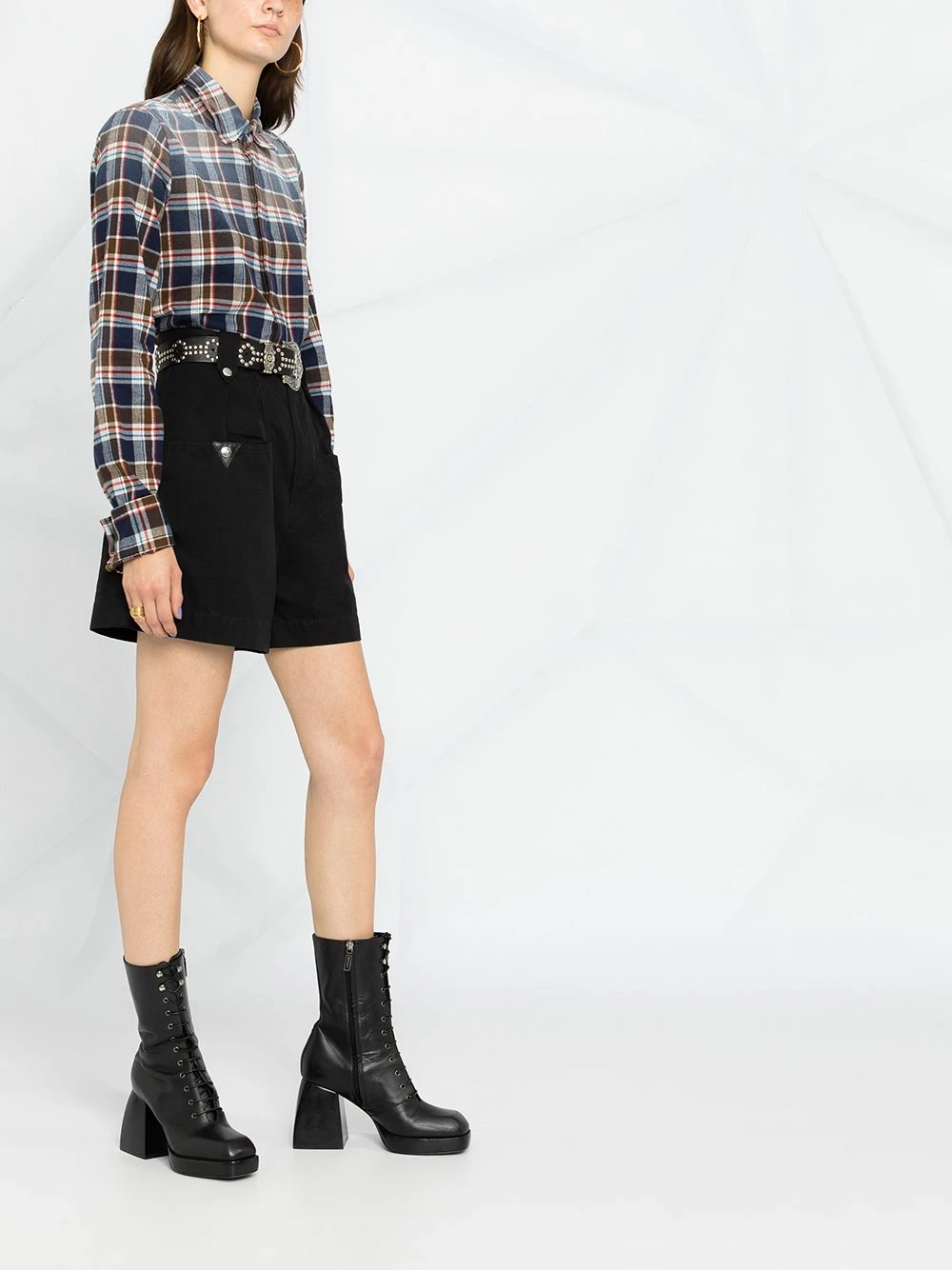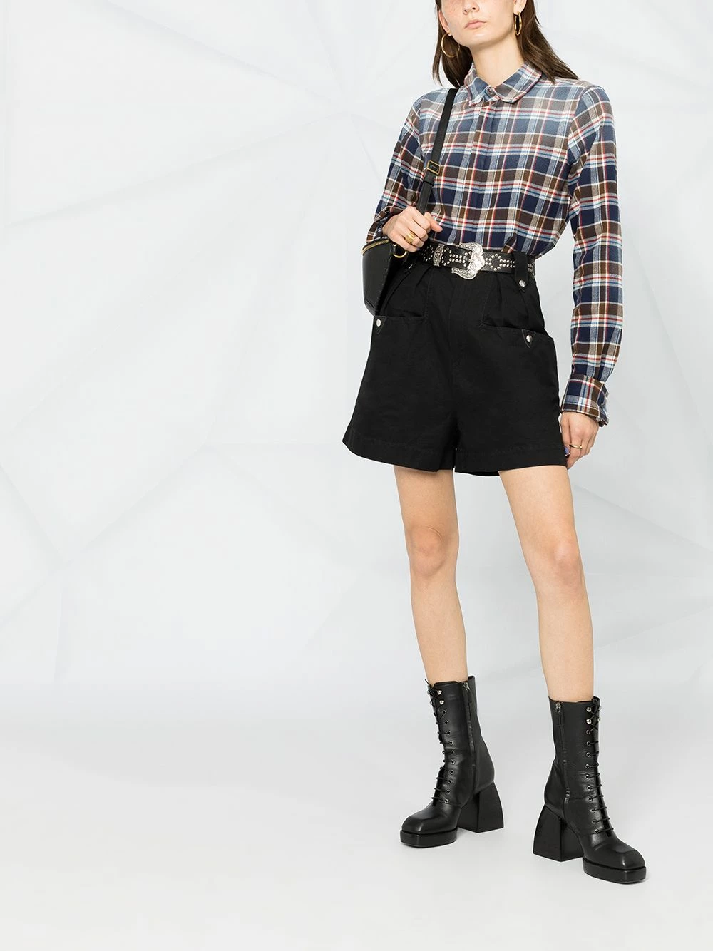 Carreaux Plaid, effet délavé, col classique, manches longues, poignets boutonnés, ourlet incurvé. Matière : coton.