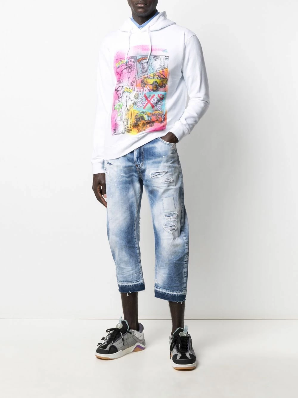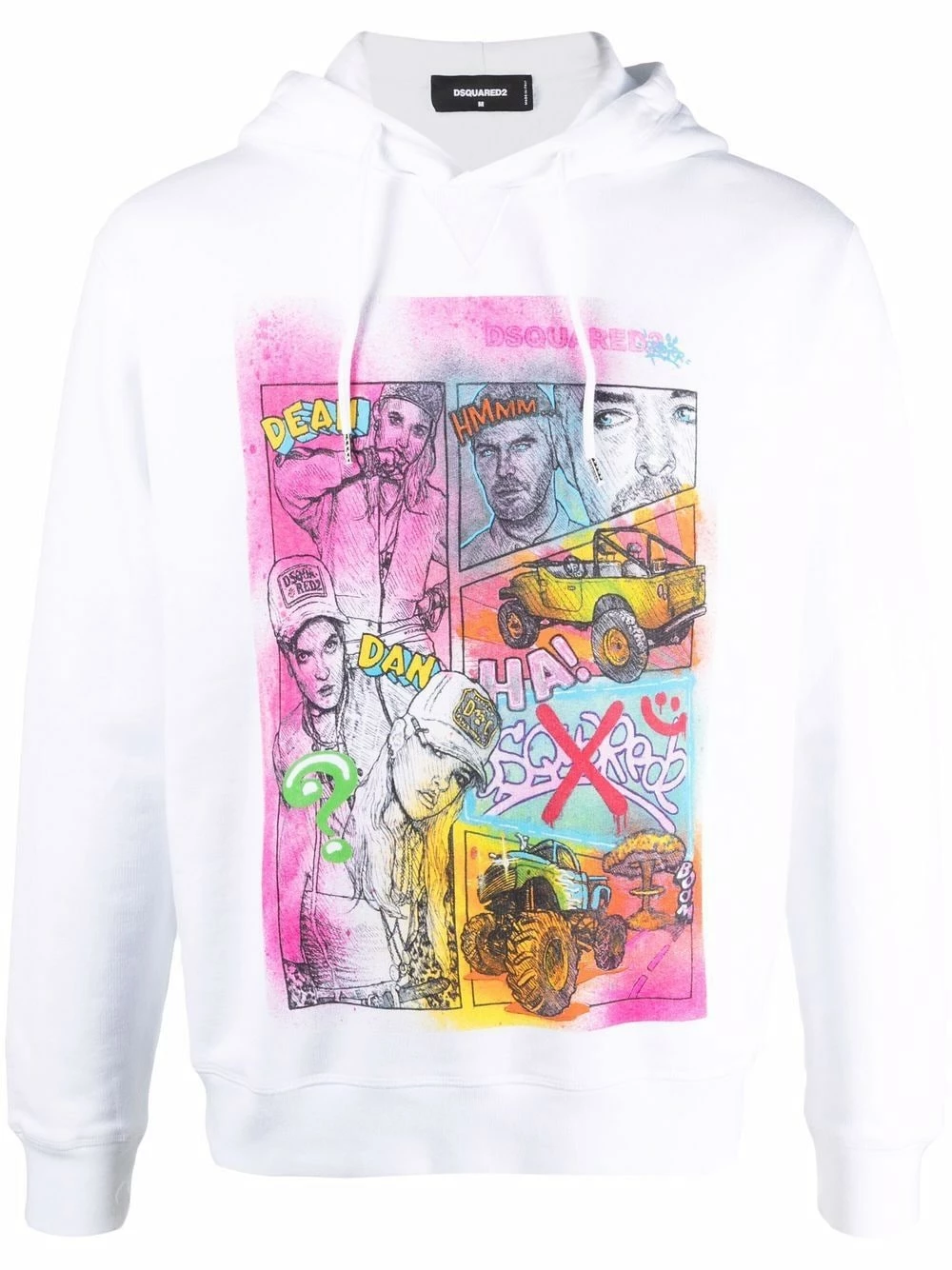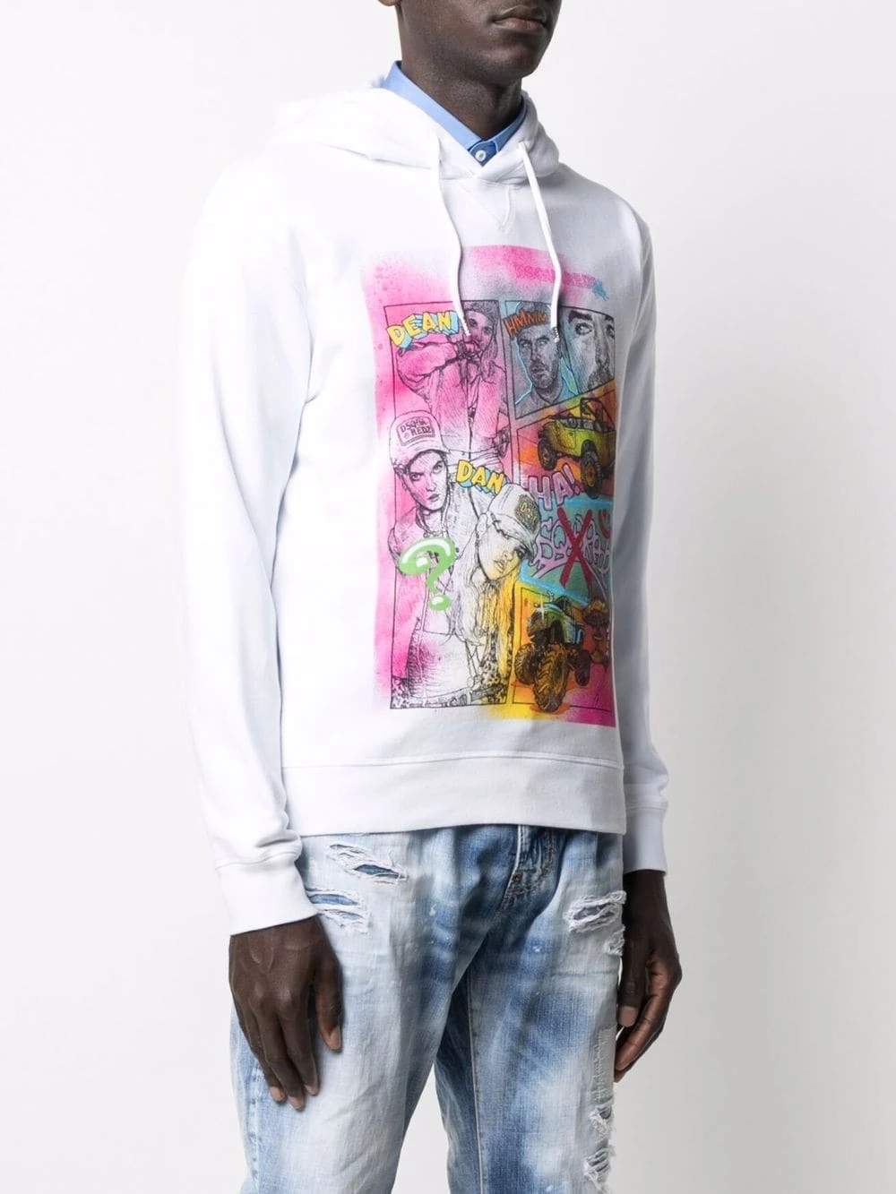 Imprimé graphique, capuche à lien de resserrage, manches longues, ourlet droit. Couleur : blanc. Matière : coton.