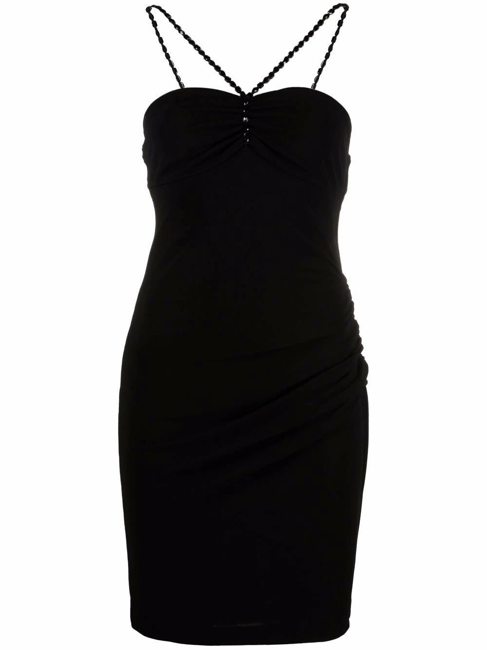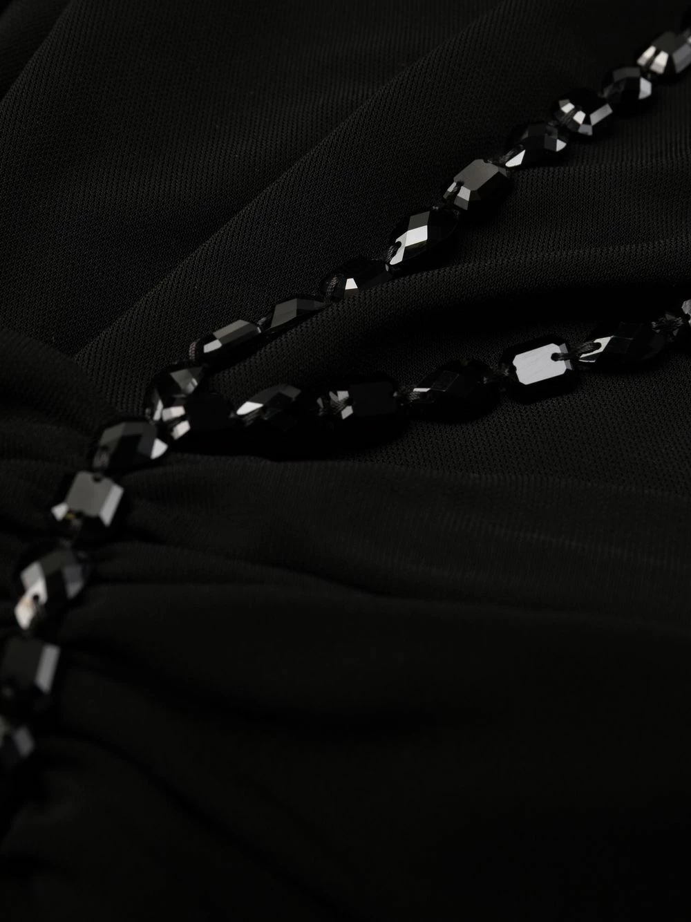 Ornements en pierres précieuses, taille ajustée, design sans manches.