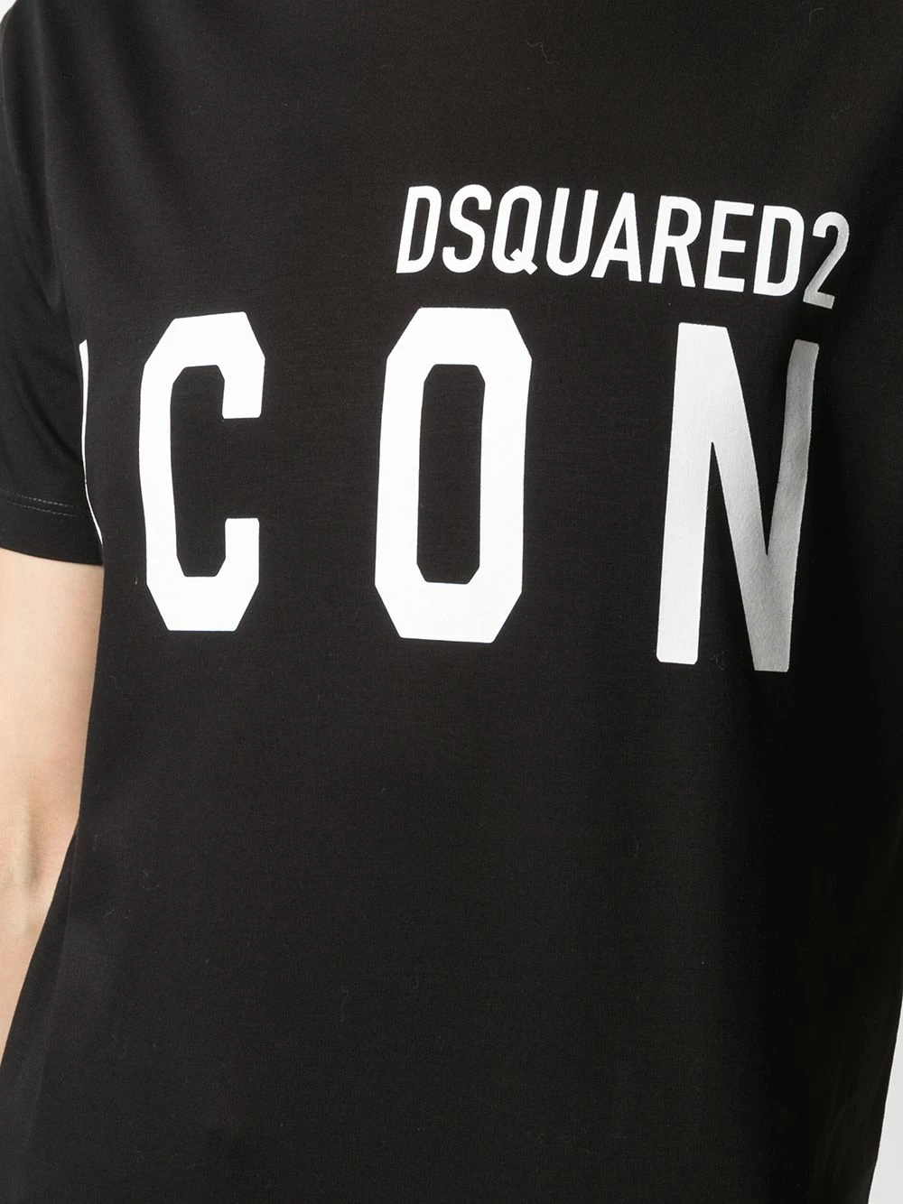 Tricot point jersey, logo imprimé à la poitrine, encolure ronde, manches courtes. Couleur : Noir. Matière : coton.