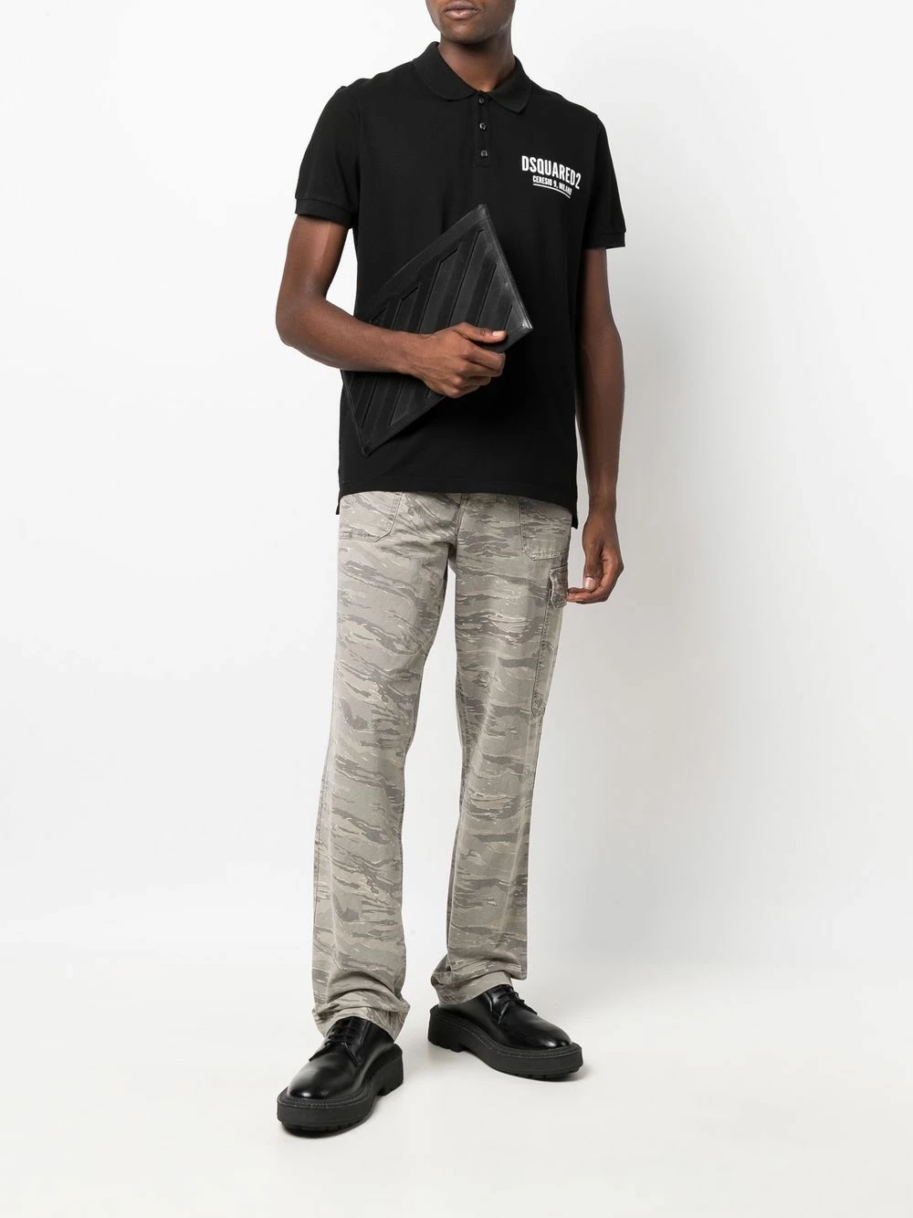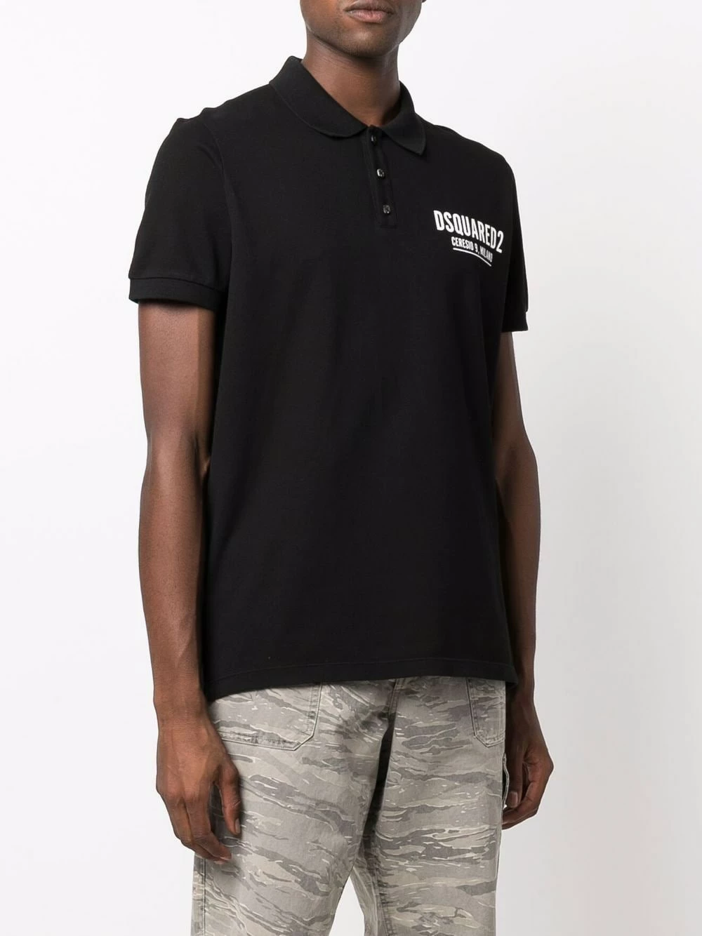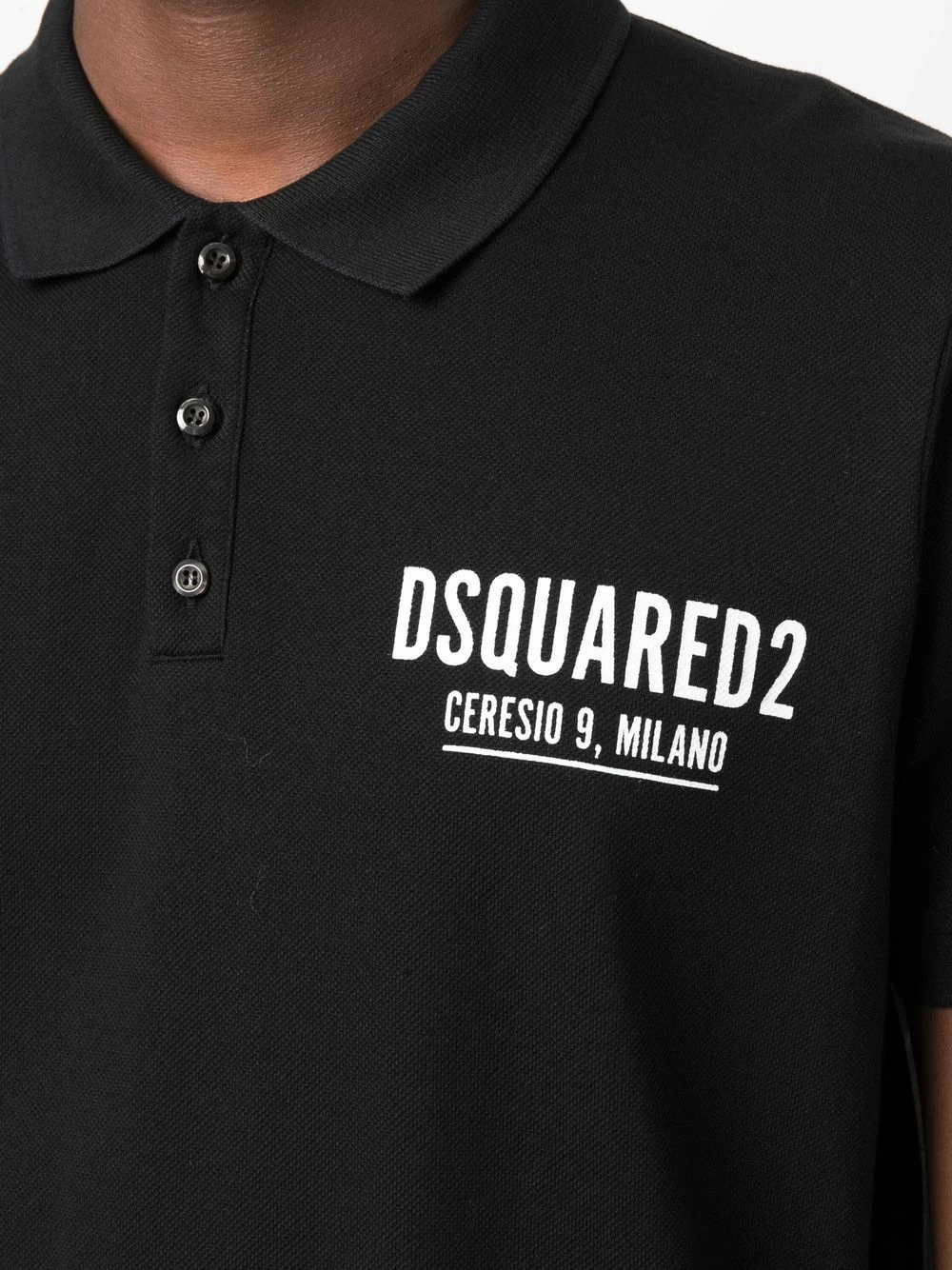 Logo imprimé à la poitrine, col polo, fermeture boutonnée, manches courtes, ourlet droit. Couleur : noir. Matière : coton.