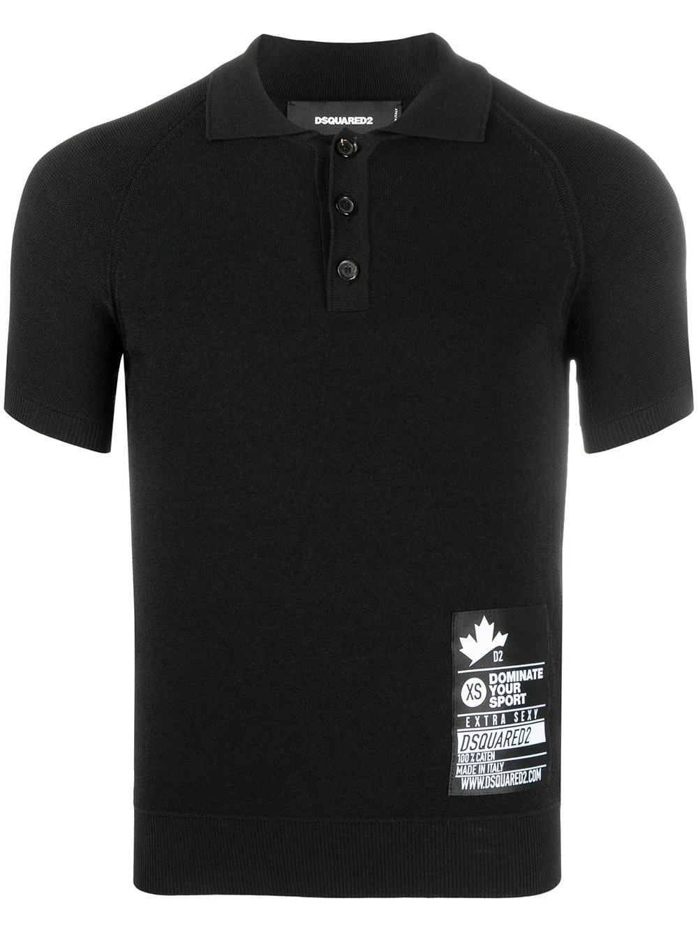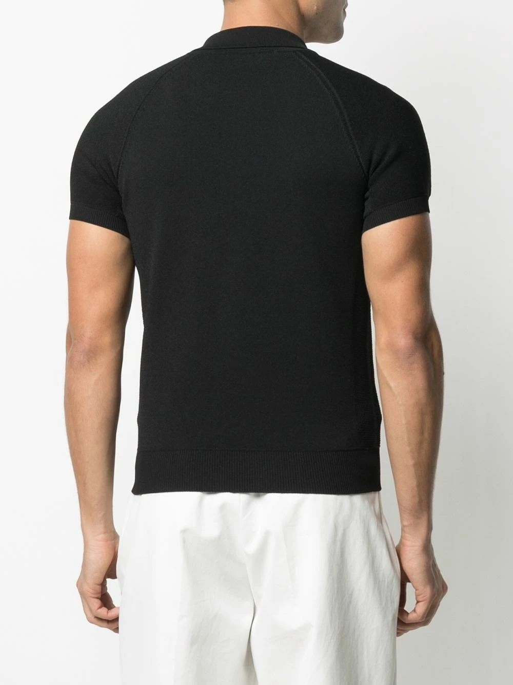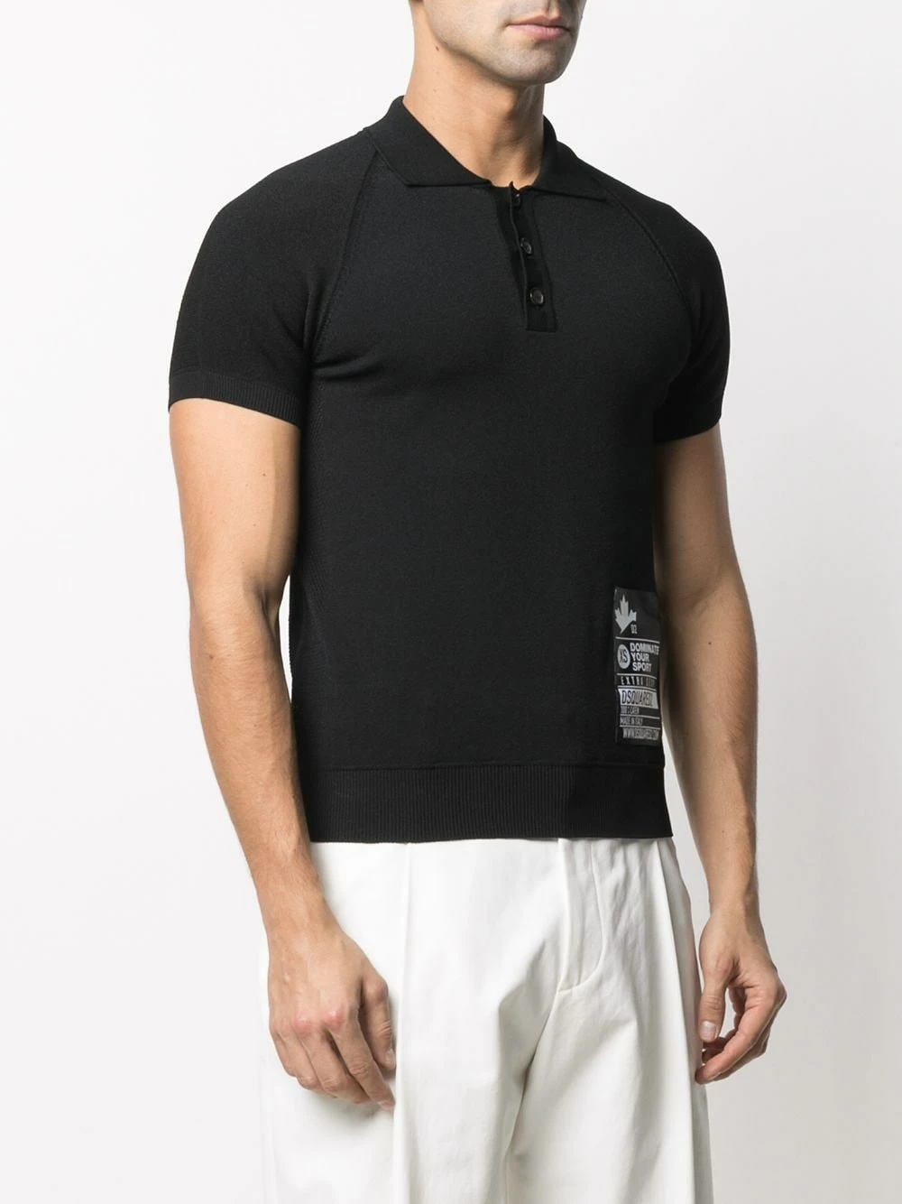 Patch logo sur le devant, col italien, boutonnière sur le devant, manches courtes. Couleur : noir.