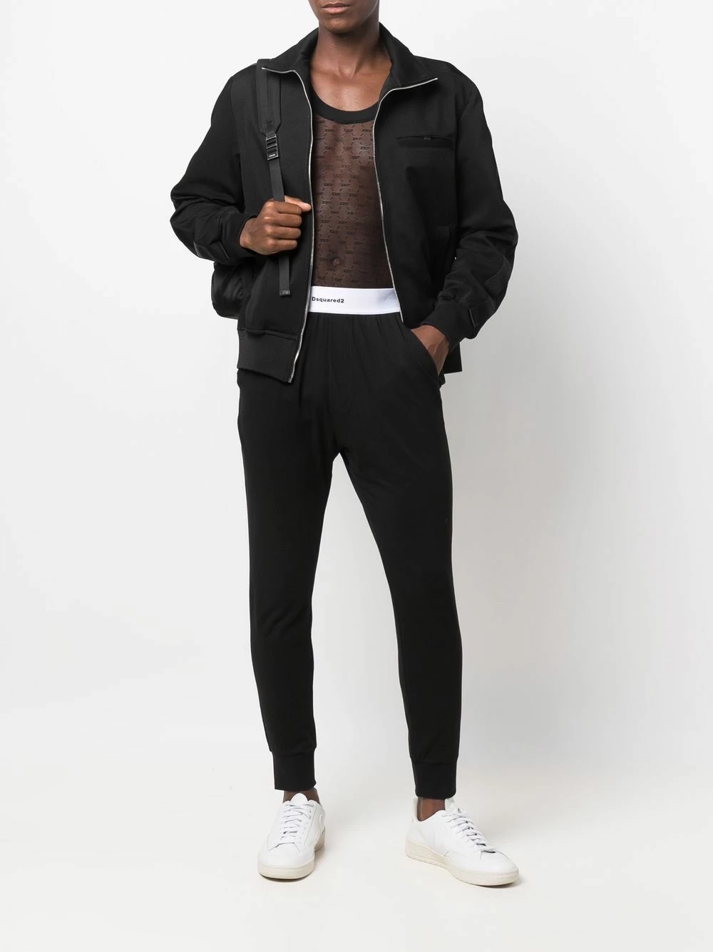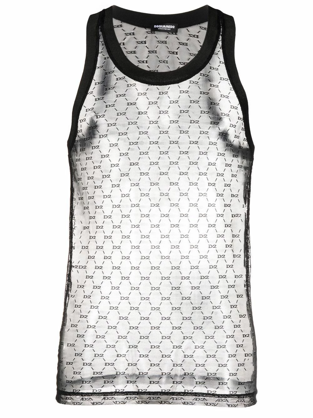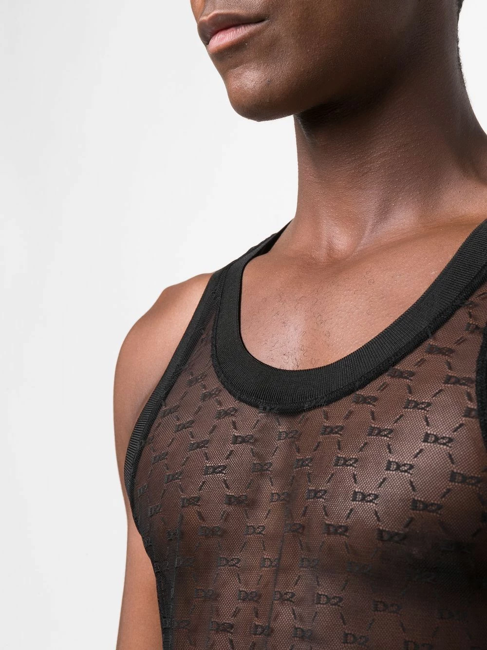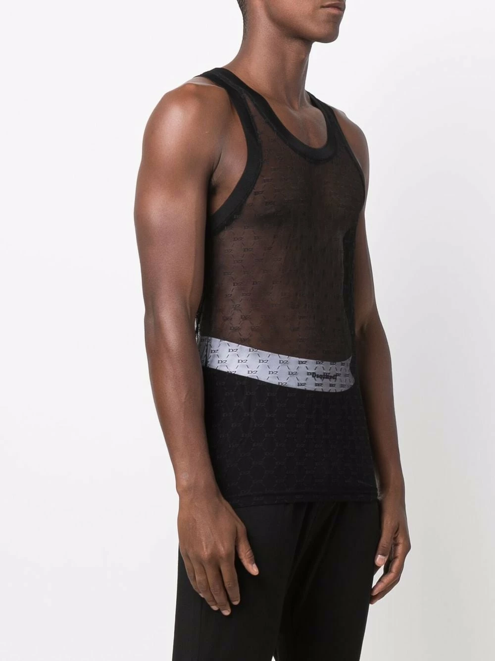 Imprimé monogrammé, détails en dentelle, encolure ronde, design sans manches, ourlet droit. Couleur : noir.