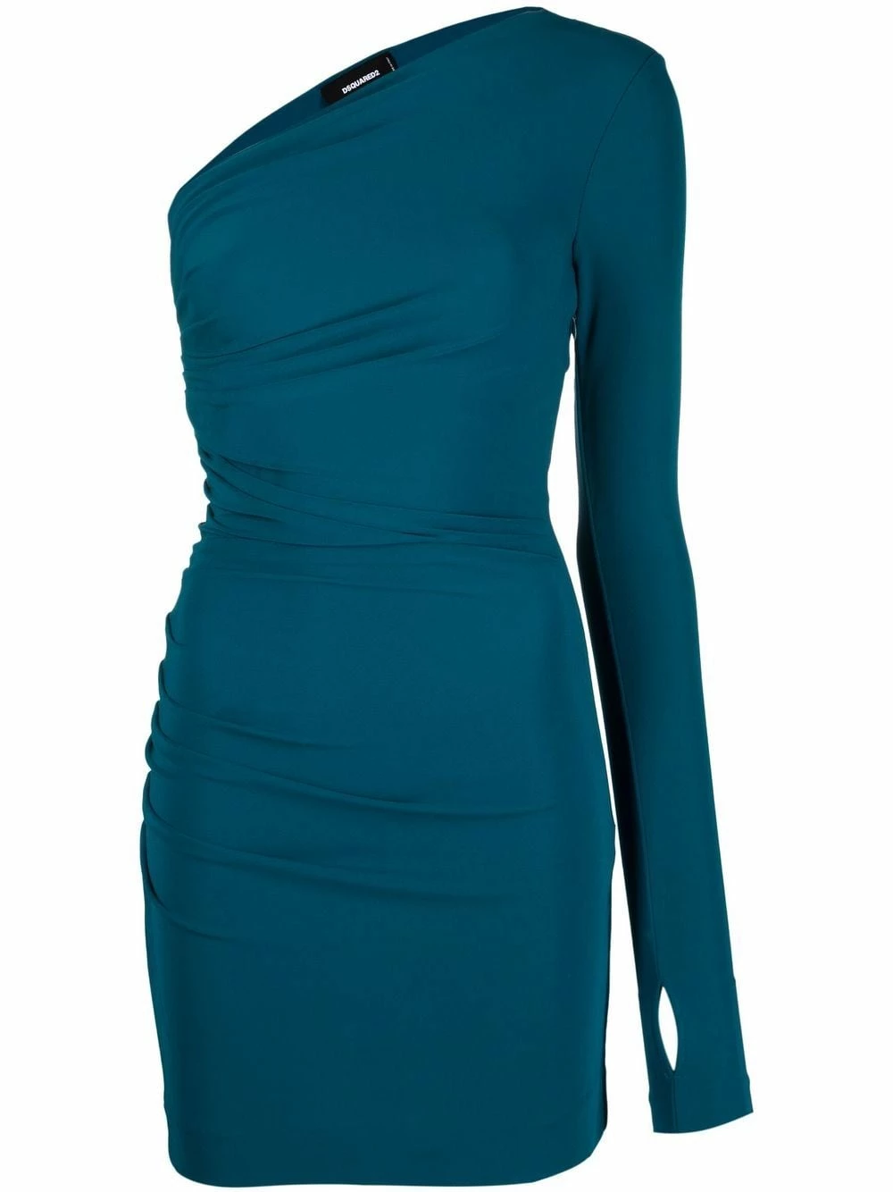 Détail drapé, design asymétrique à une épaule, manches longues, ourlet droit, coupe courte.