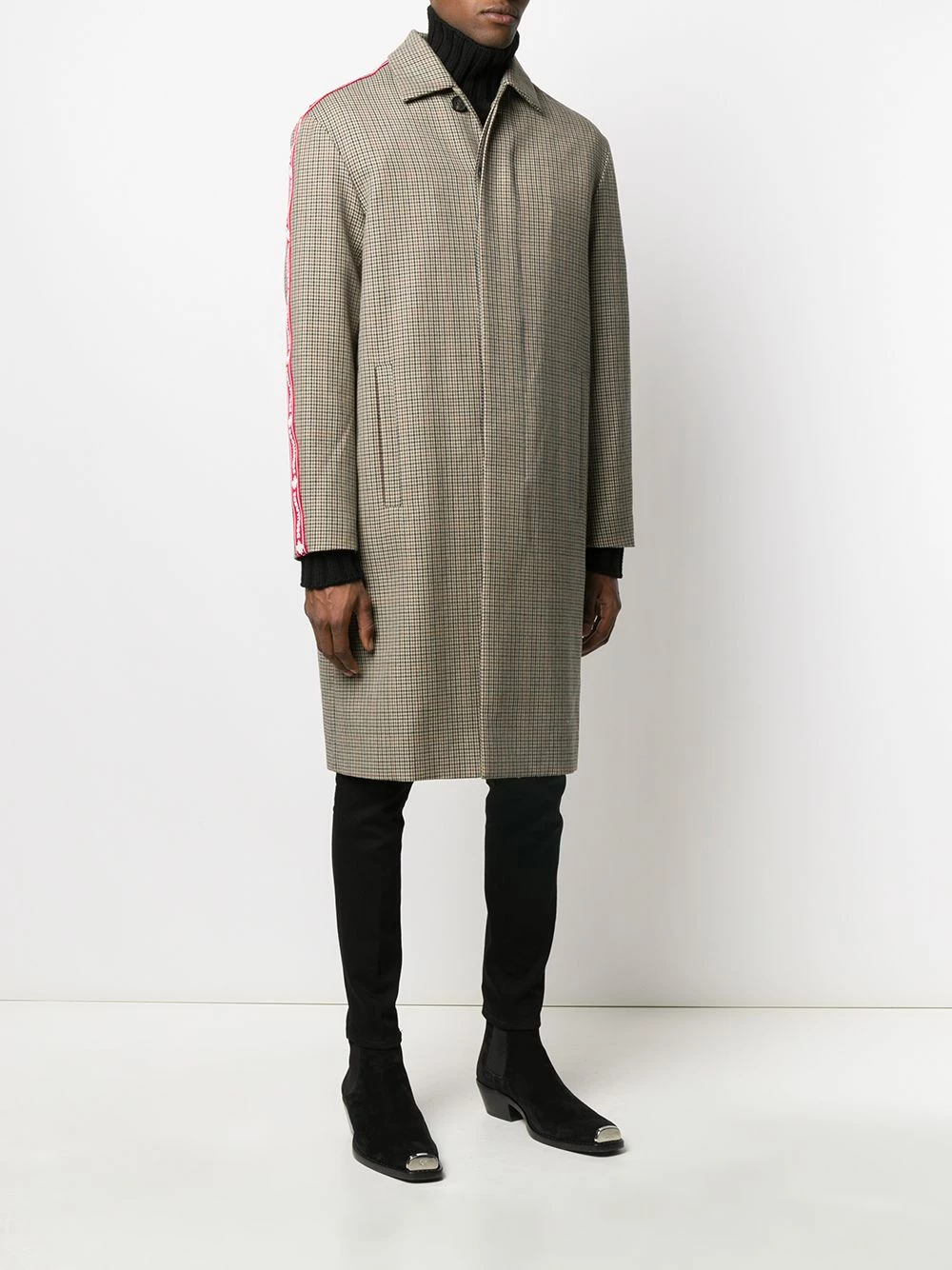 Manteau mi-long à boutonnière en laine vierge Dsquared2 avec carreaux, col italien ouvert, fermeture devant dissimulée, manches longues, poches devant, fente arrière et ourlet droit.