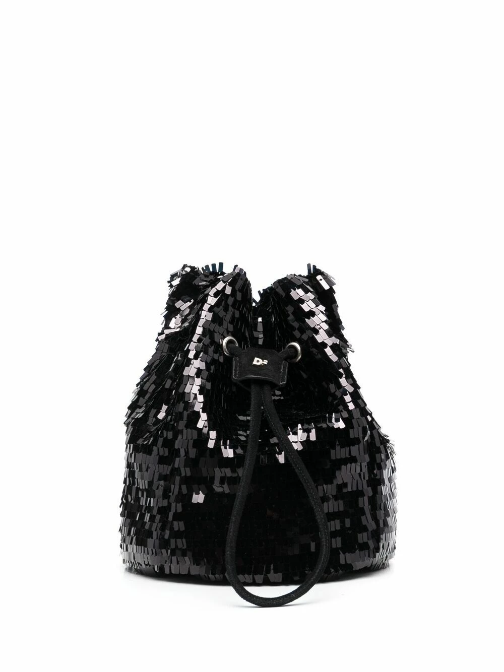 Ornements en paillettes, lien de resserrage, doublure intégrale. Couleur : noir. Matière : coton.
