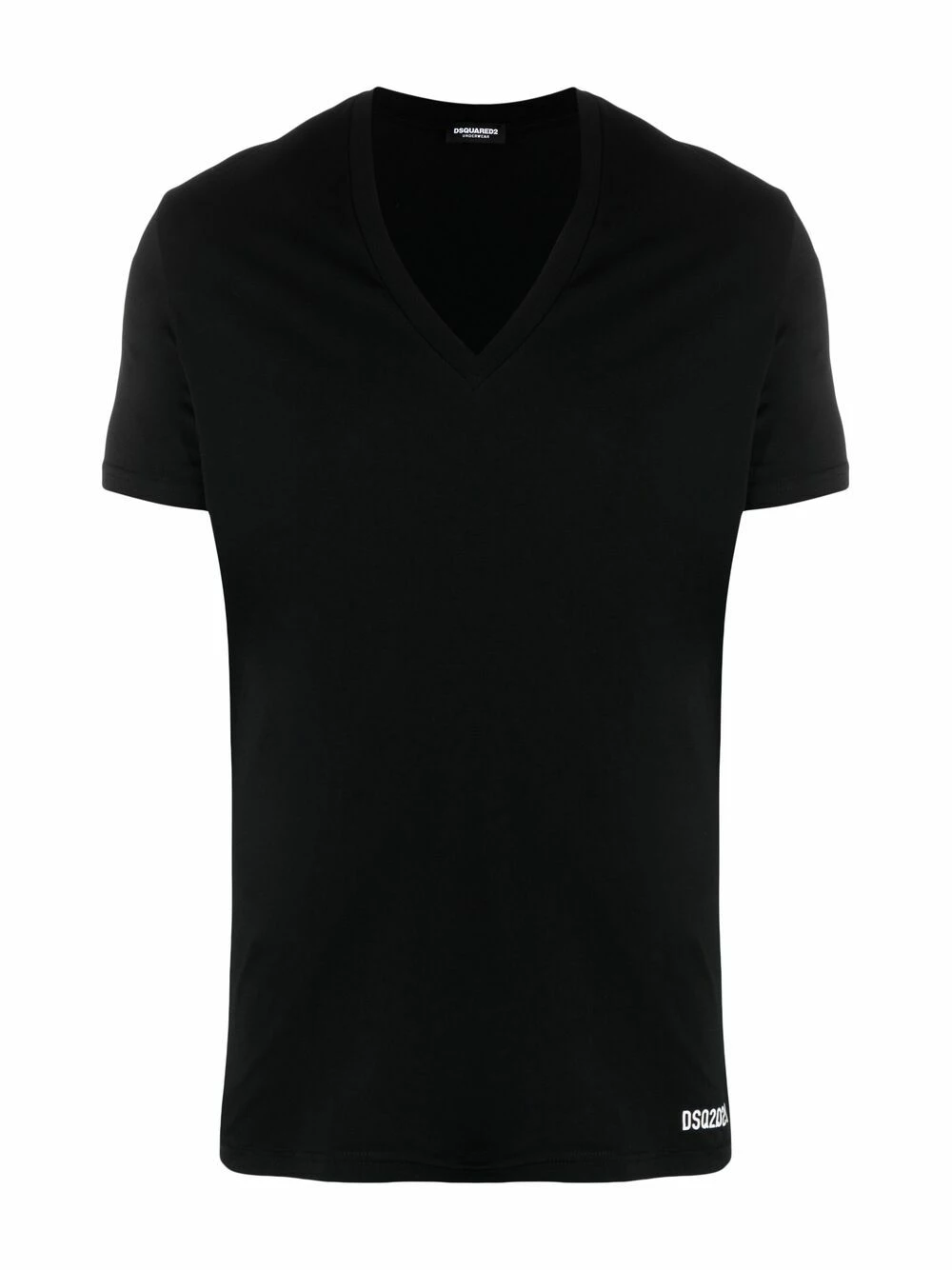 Ourlet à logo imprimé, col v, manches courtes, ourlet droit. Couleur : noir.