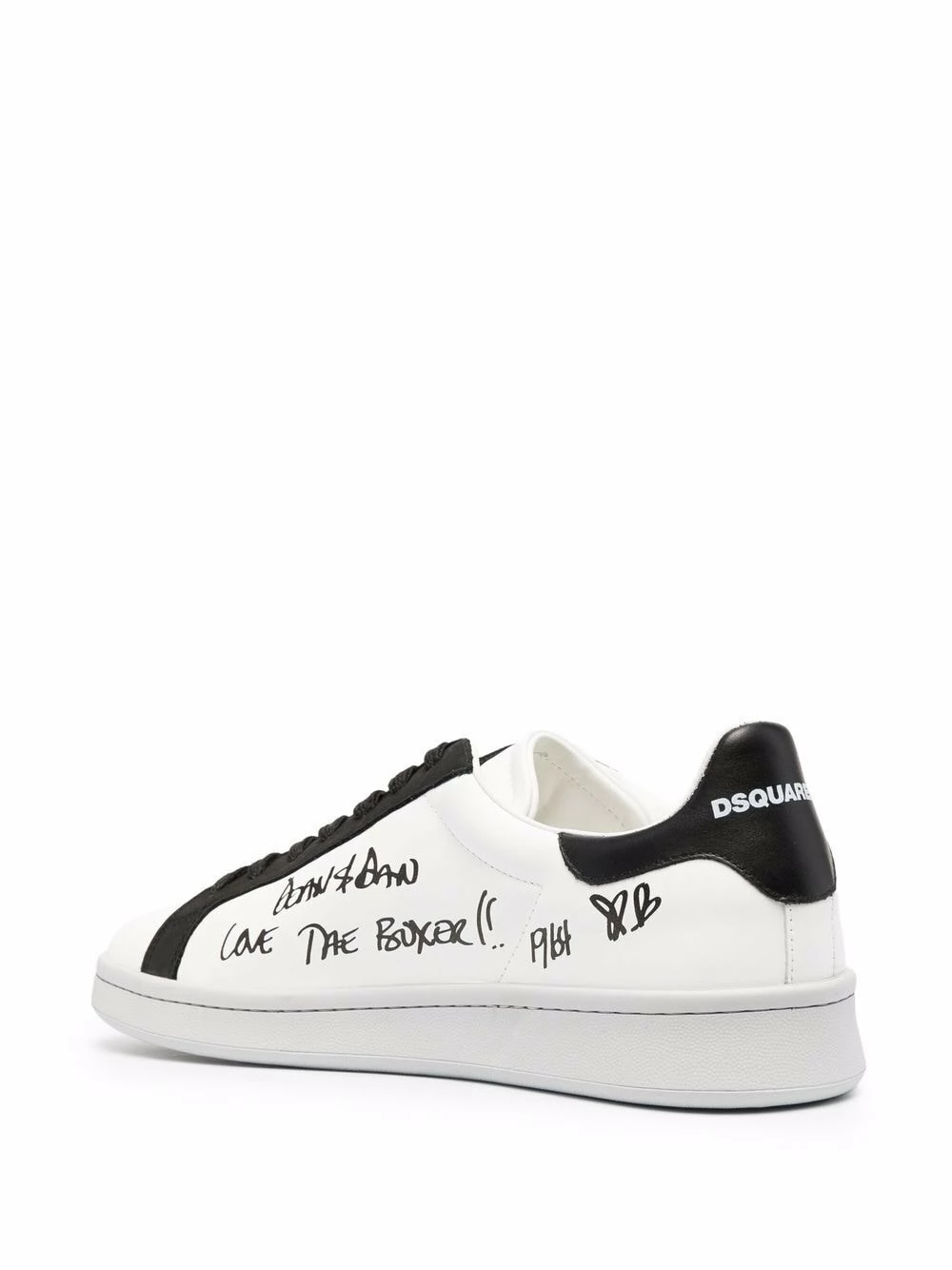 Imprimé feuille d’érable, slogan imprimé sur le côté, languette à logo imprimé, contrefort contrastant, contrefort à logo, bout rond, fermeture à lacer sur le devant, semelle plate. Matière : cuir.