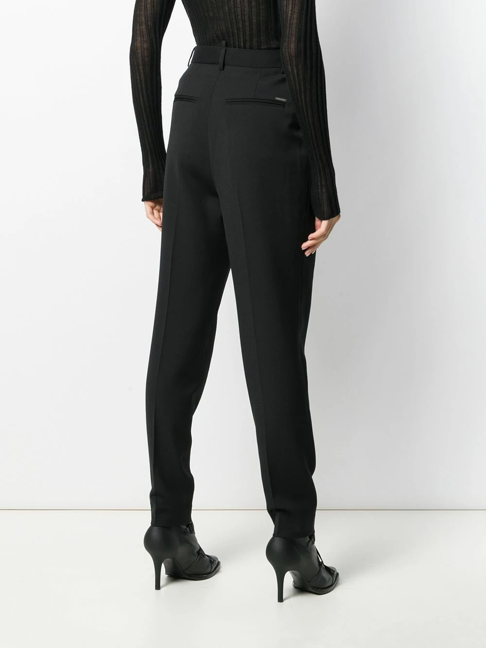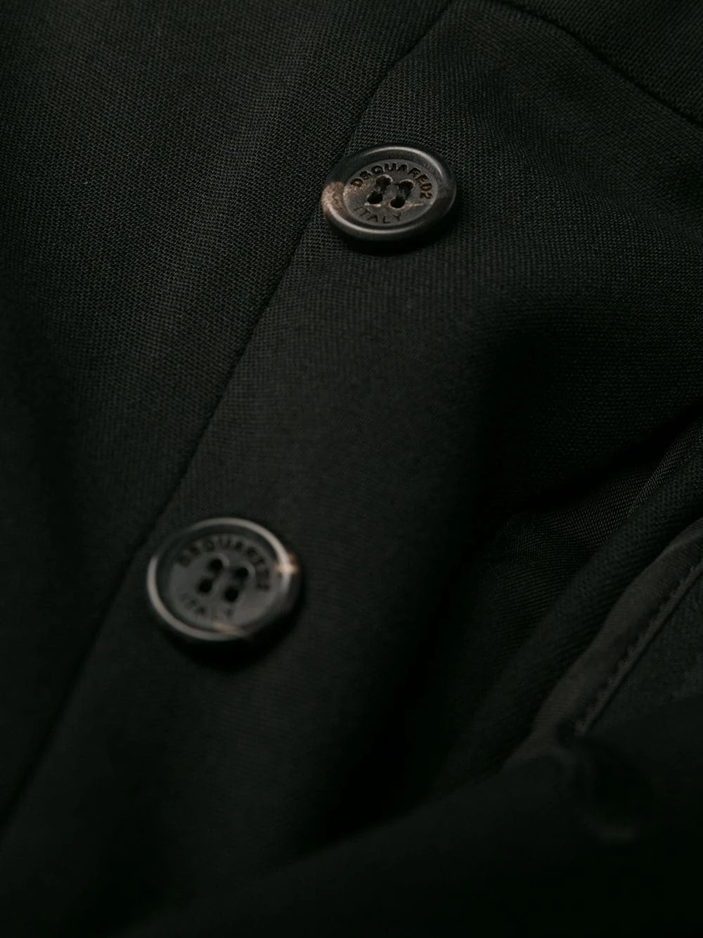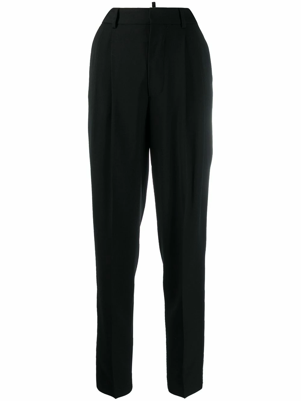 Pantalon fuselé à pinces en laine Dsquared2 avec passants de ceinture à la taille, taille resserrée, longueur classique, coupe fuselée et poches latérales. Couleur : noir.