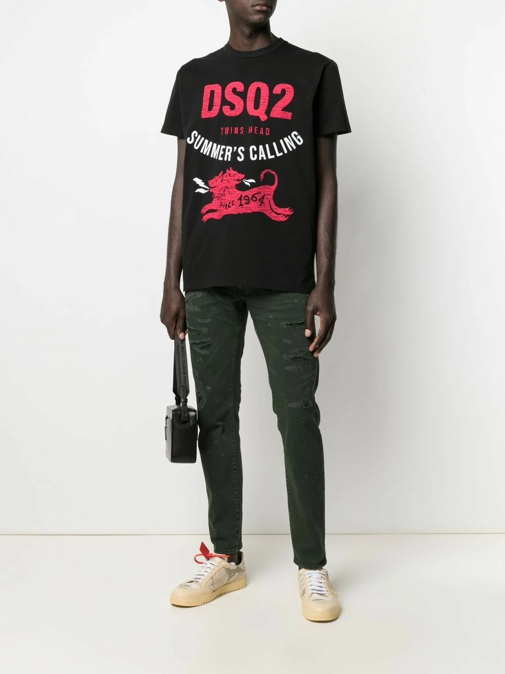 Encolure ronde, manches courtes, ourlet droit, imprimé graphique, logo imprimé sur le devant. Couleur : noir. Matière : coton.