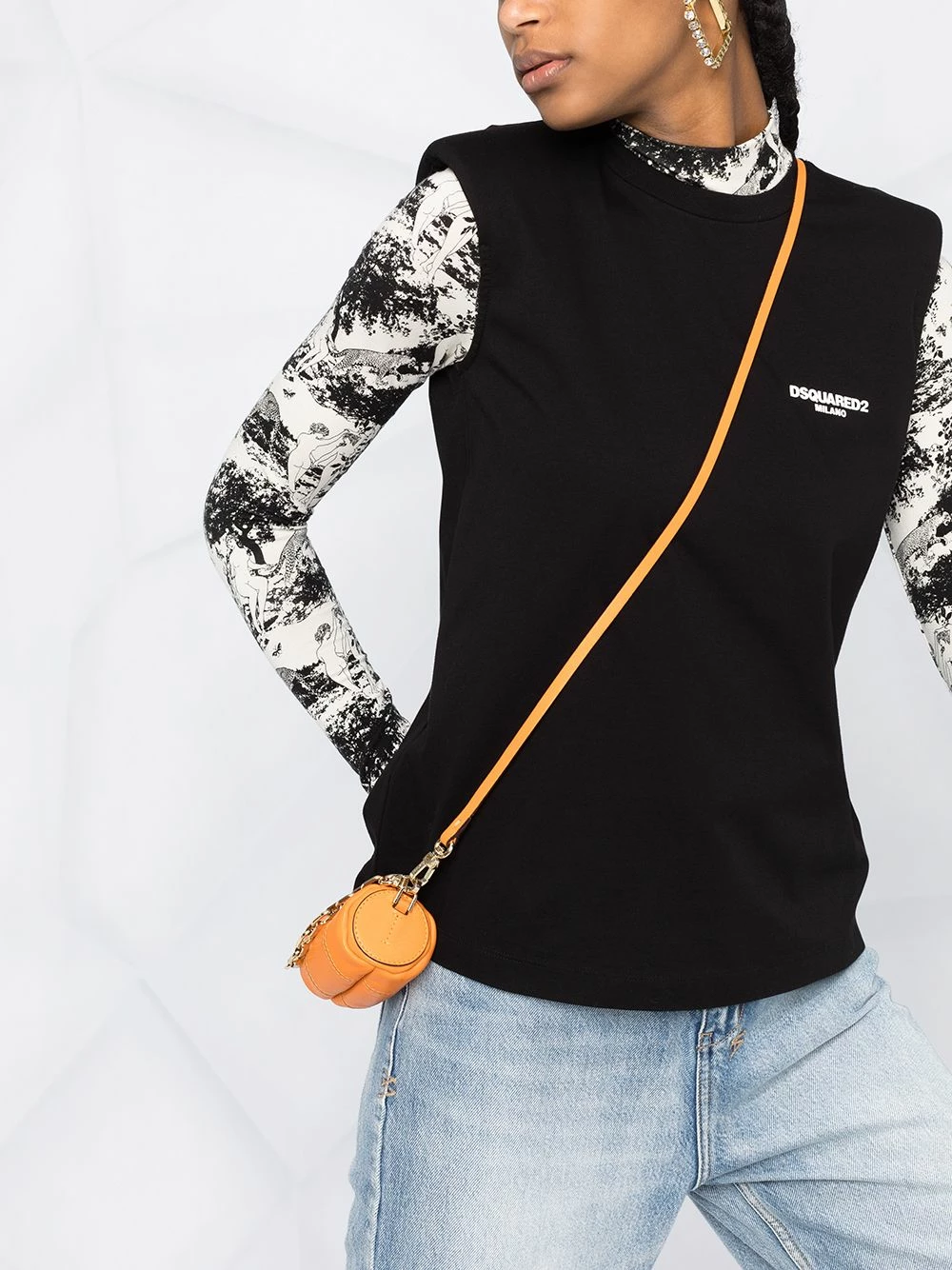 Épaulettes, logo imprimé à la poitrine, design sans manches, encolure ras du cou, ourlet droit. Couleur : noir. Matière : coton.