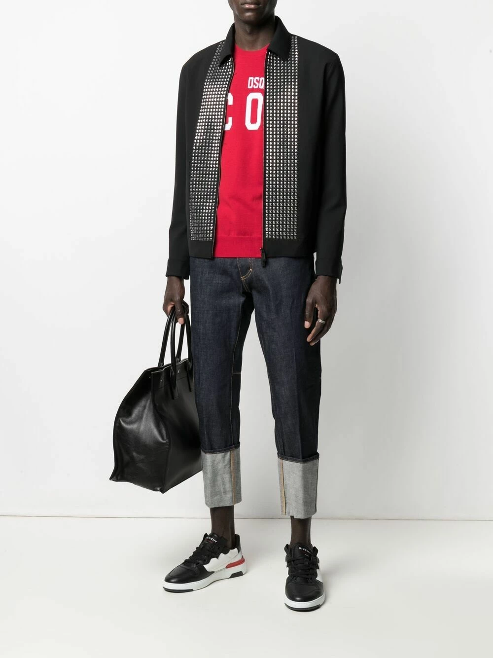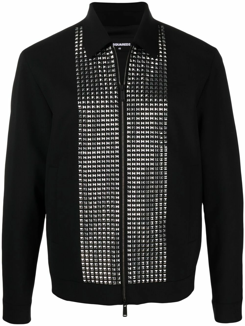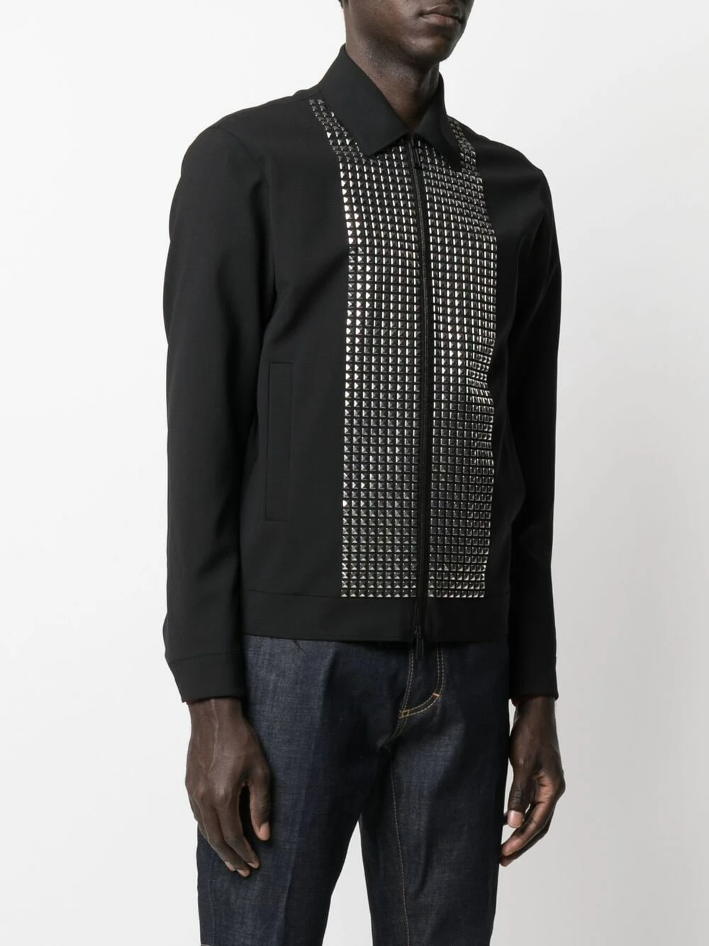 Étoiles métalliques, col classique, fermeture zippée devant, manches longues, poignets boutonnés. Couleur : noir.