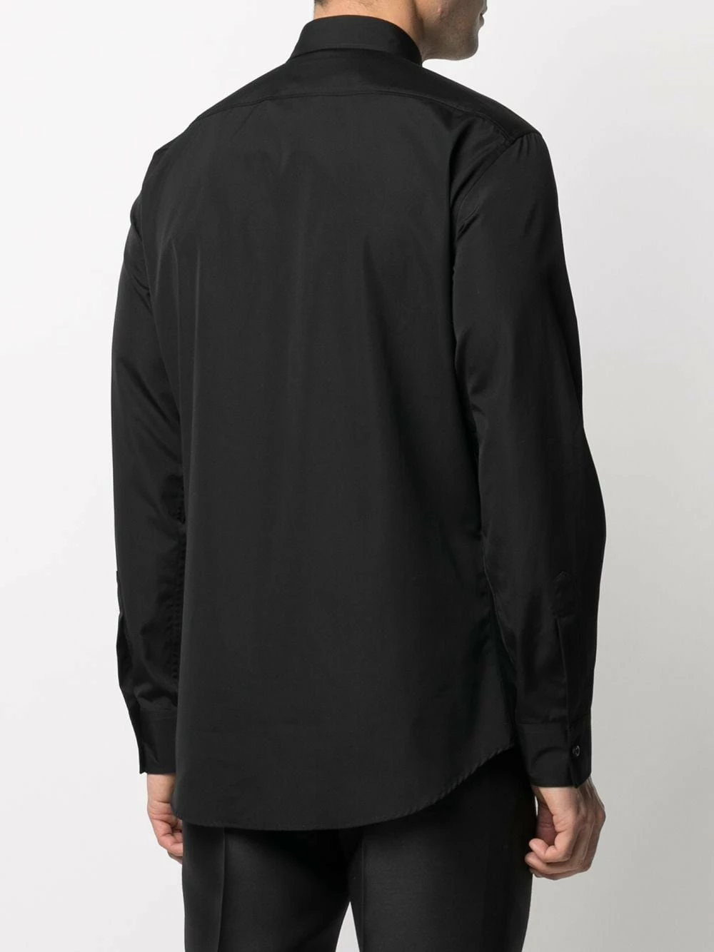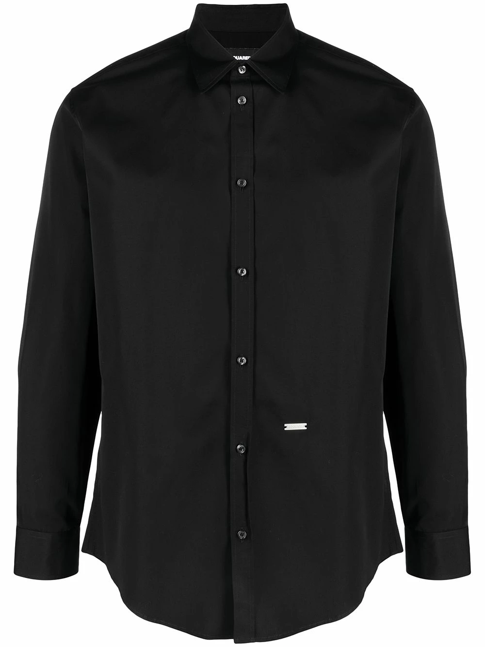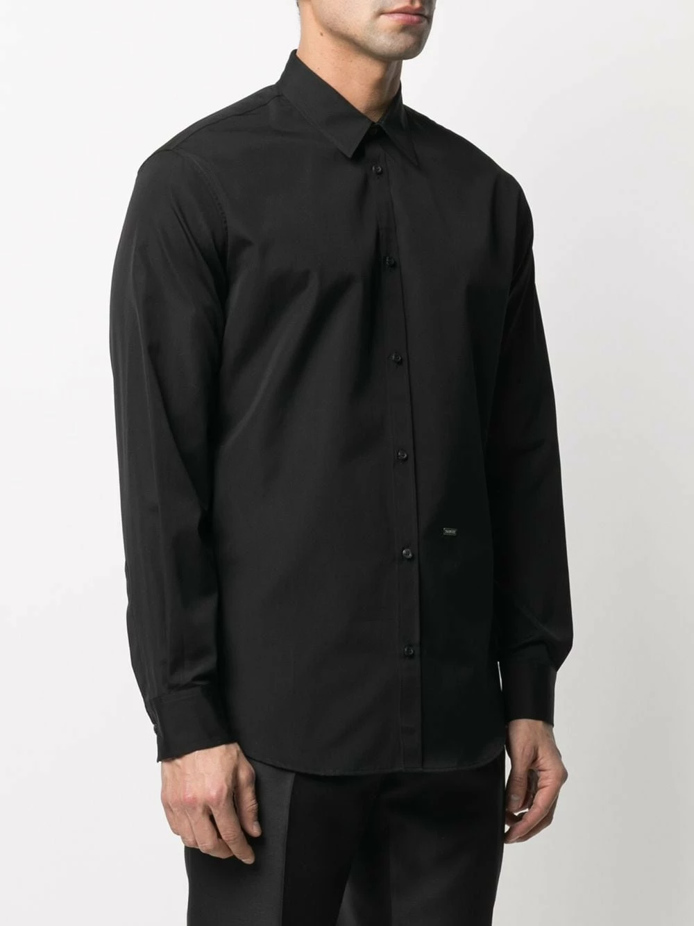 Plaque logo, col classique, boutonnière sur le devant, manches longues, ourlet incurvé. Couleur : noir. Matière : coton.