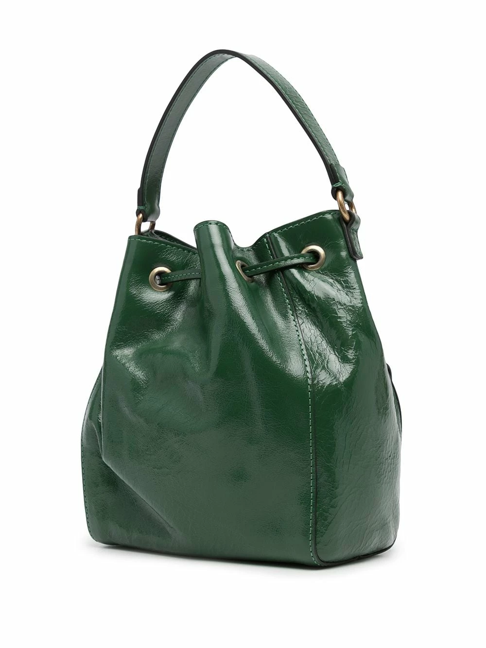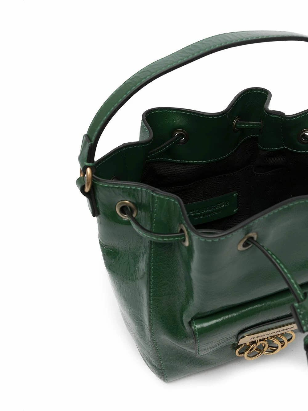 Plaque logo dorée, lien de resserrage, bride porté épaule détachable et ajustable, anse classique, compartiment principal, poche devant à rabat. Matière : cuir.