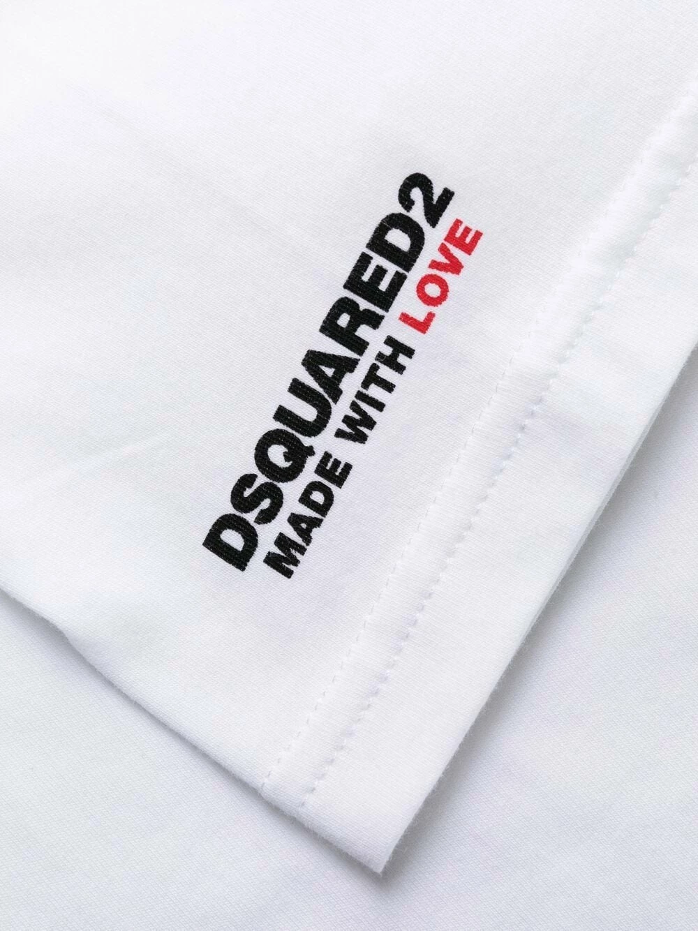 Encolure ronde, manches courtes, logo imprimé sur la manche, slogan imprimé, ourlet droit. Couleur : blanc.