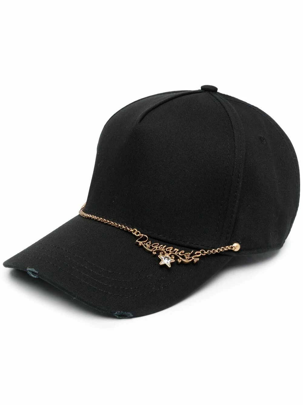 Finitions à effet usé, coutures ton sur ton, bordures en chaîne, plaque logo, taille ajustable. Couleur : noir. Matière : coton.