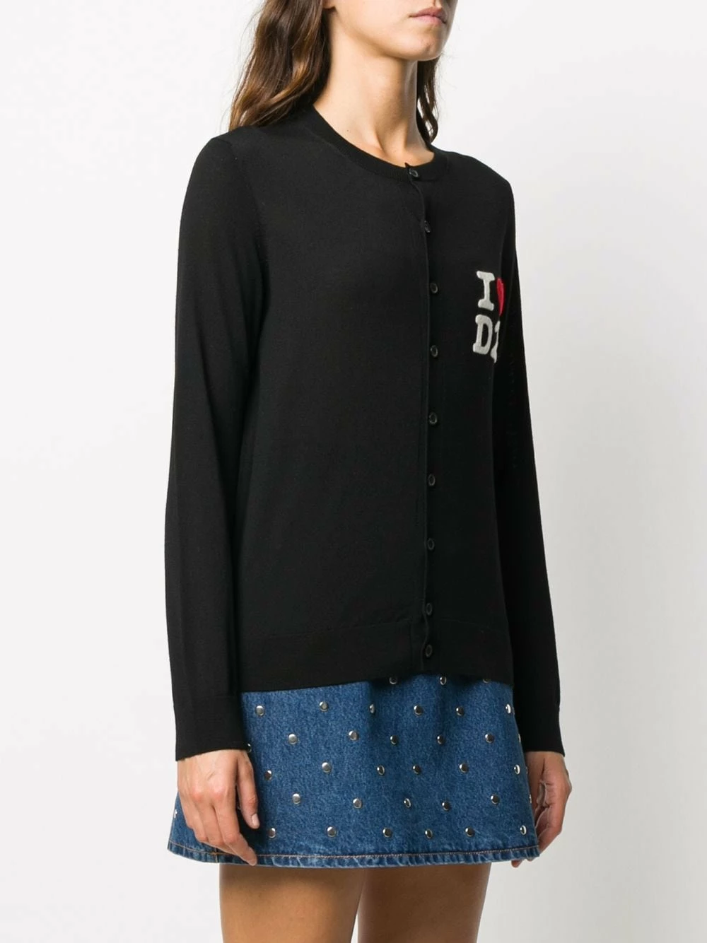 Encolure ronde, boutonnière sur le devant, manches longues, poignets nervurés, ourlet nervuré. Couleur : noir. Matière : laine vierge.