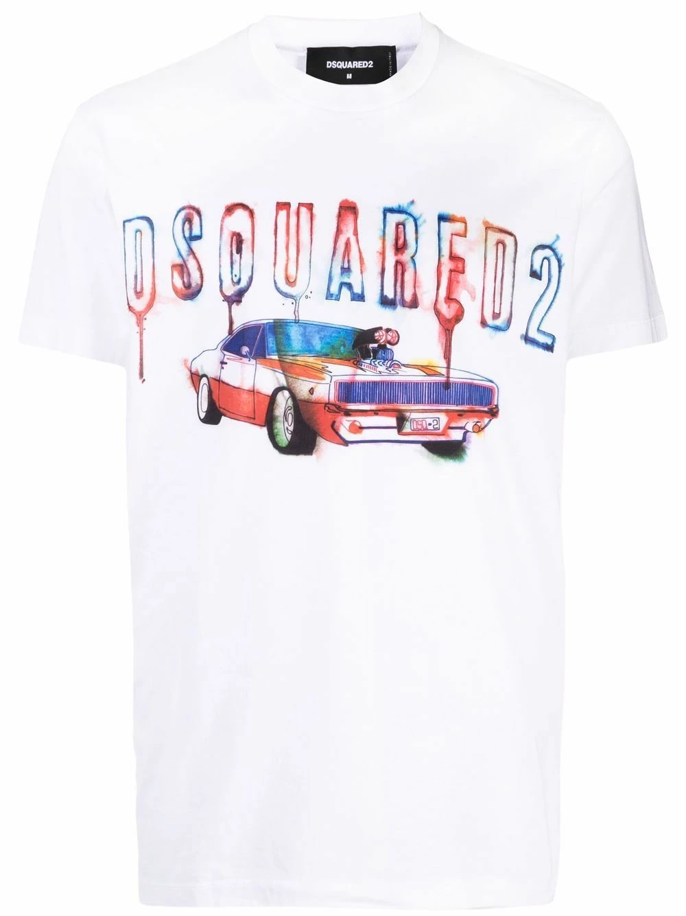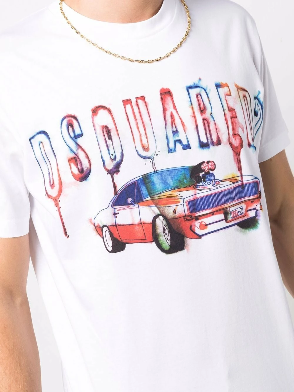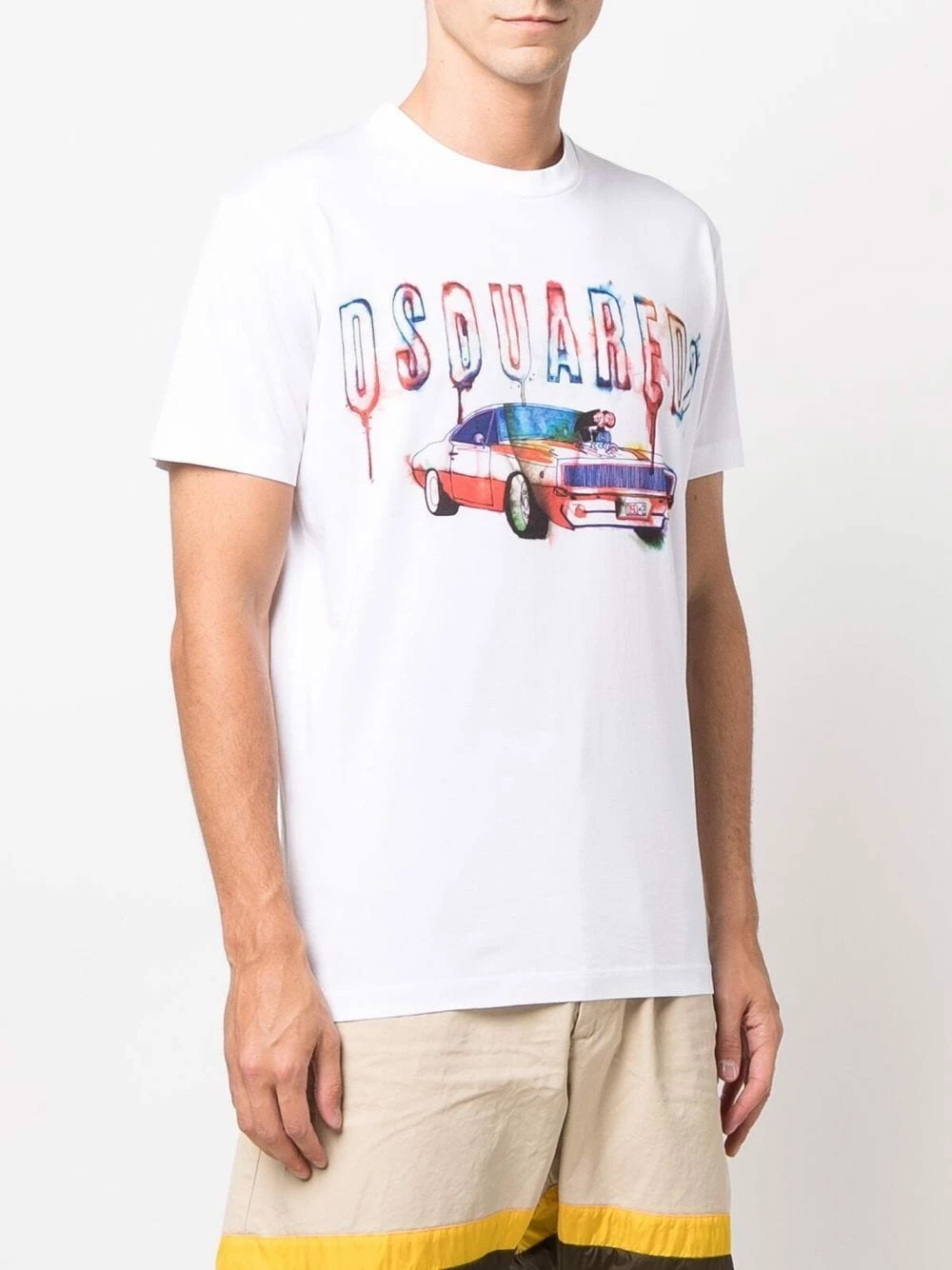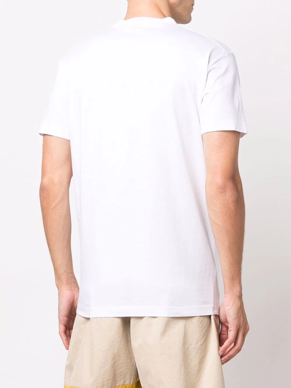 Logo imprimé sur le devant, imprimé graphique sur le buste, encolure ras du cou, manches courtes, ourlet droit. Couleur : blanc. Matière : coton.