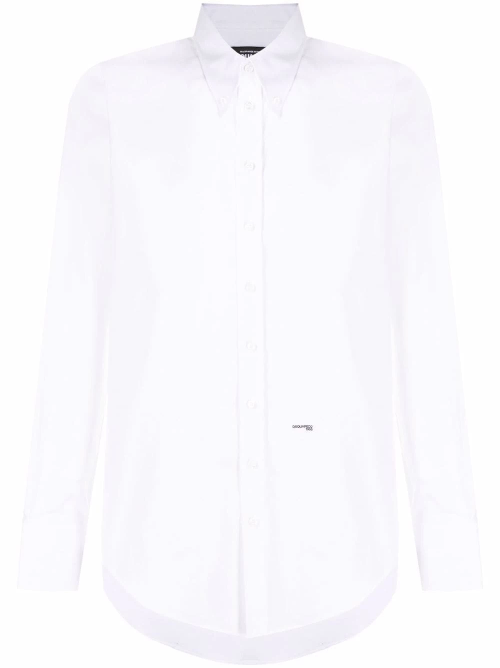 Logo imprimé sur le devant, col boutonné, boutonnière sur le devant, manches longues, poignets boutonnés, ourlet incurvé. Couleur : blanc. Matière : coton.