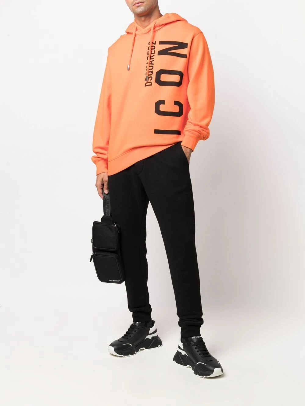 Logo imprimé à l’arrière, ceinture élastique, deux poches latérales fendues, coupe fuselée. Matière : coton.