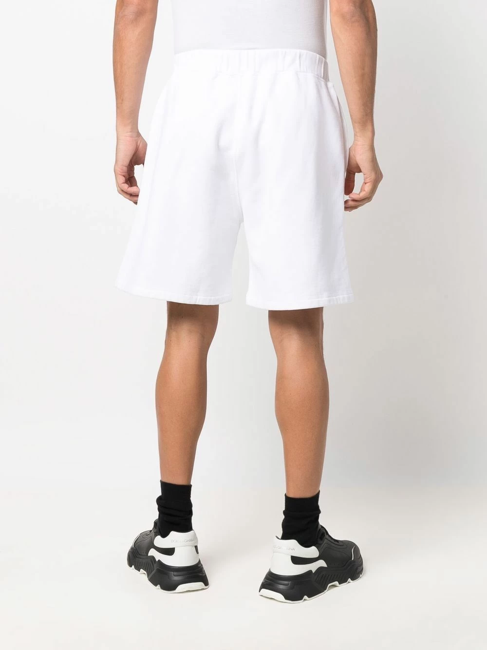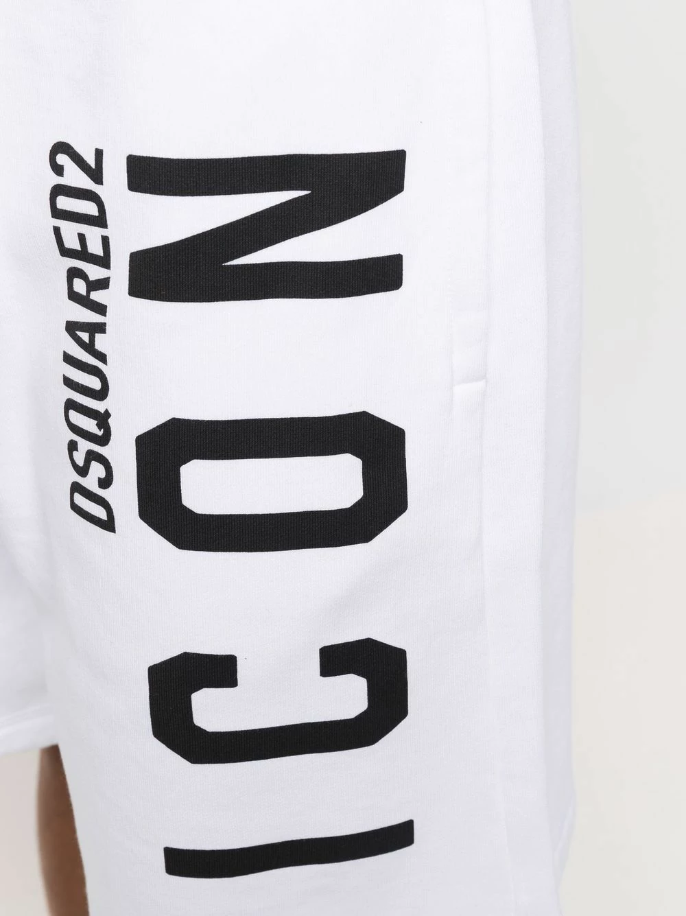 Logo imprimé sur la cuisse, ceinture élastique, deux poches latérales fendues. Couleur : blanc. Matière : coton.