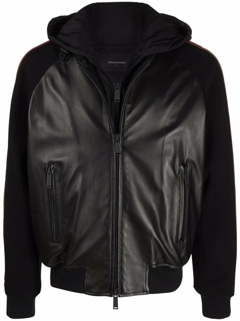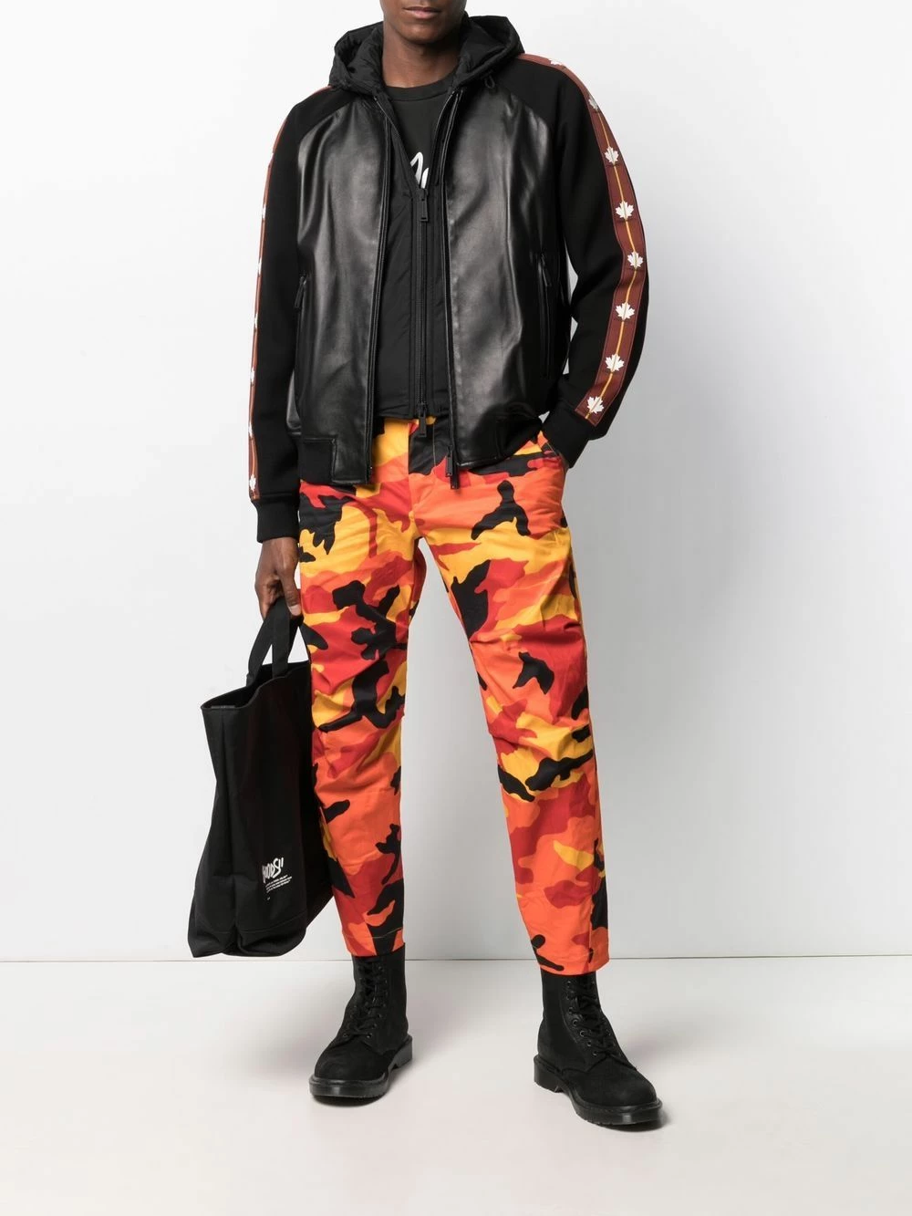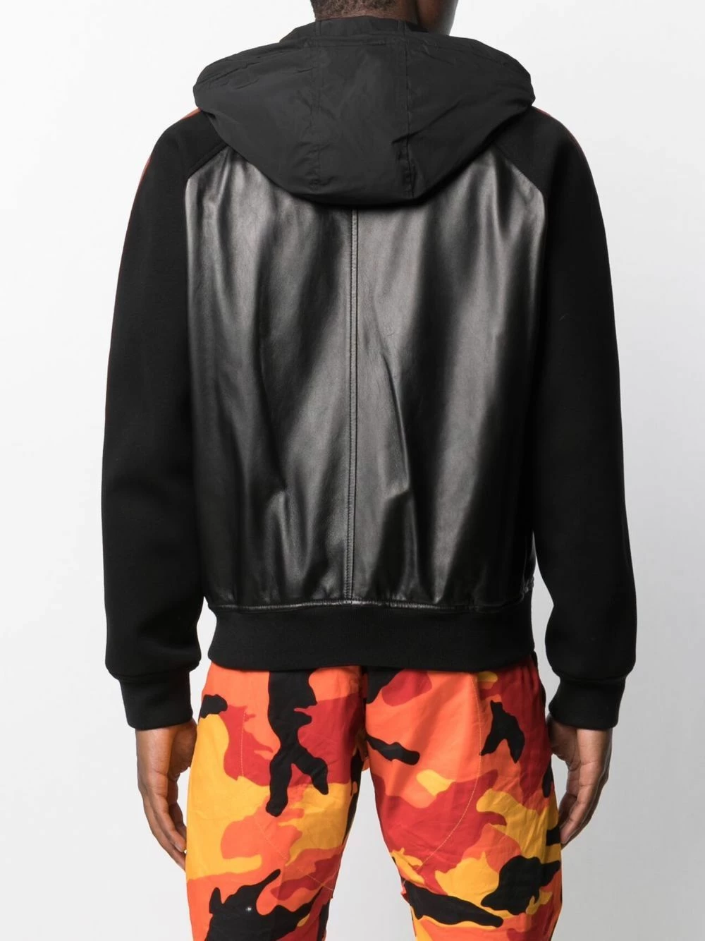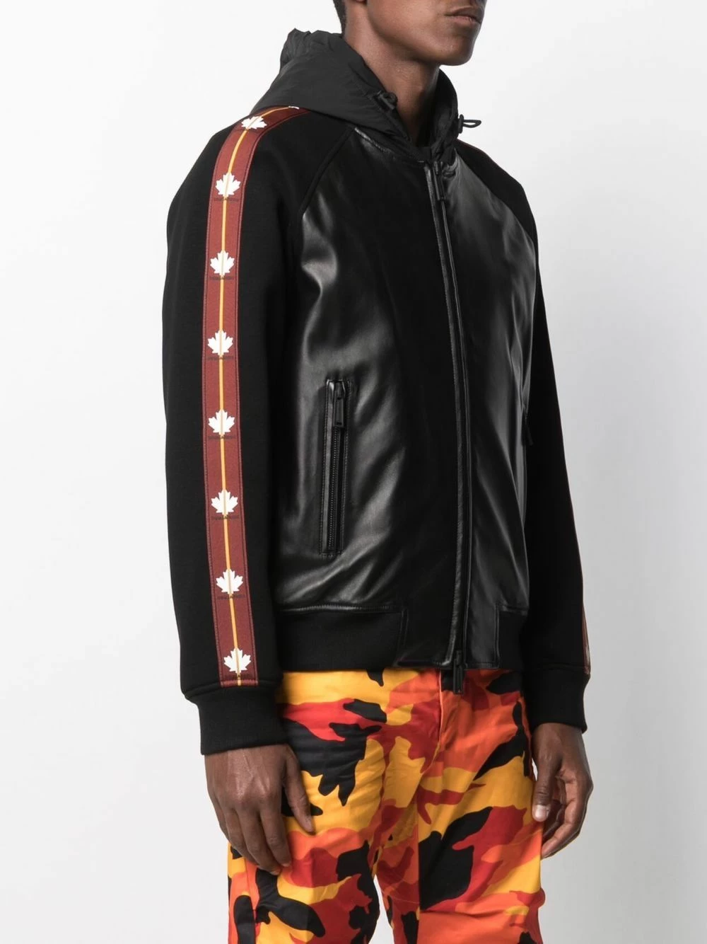 Imprimé feuille d’érable, capuche classique, manches à tissu contrastant, fermeture zippée devant, ourlet nervuré. Couleur : noir.