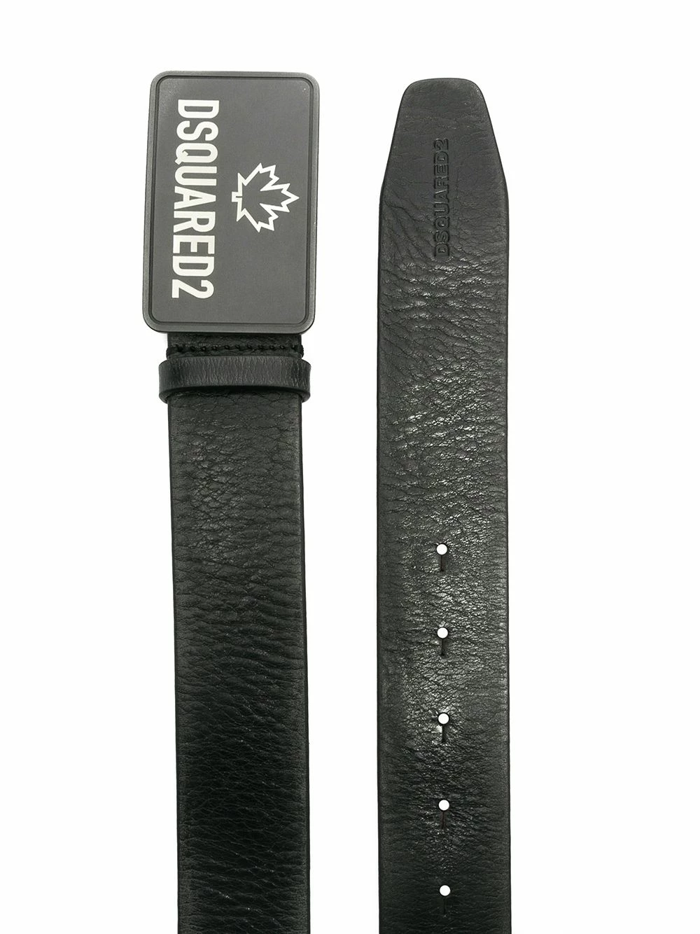 Logo imprimé sur le devant, design perforé, passants de ceinture. Couleur : noir. Matière : cuir.