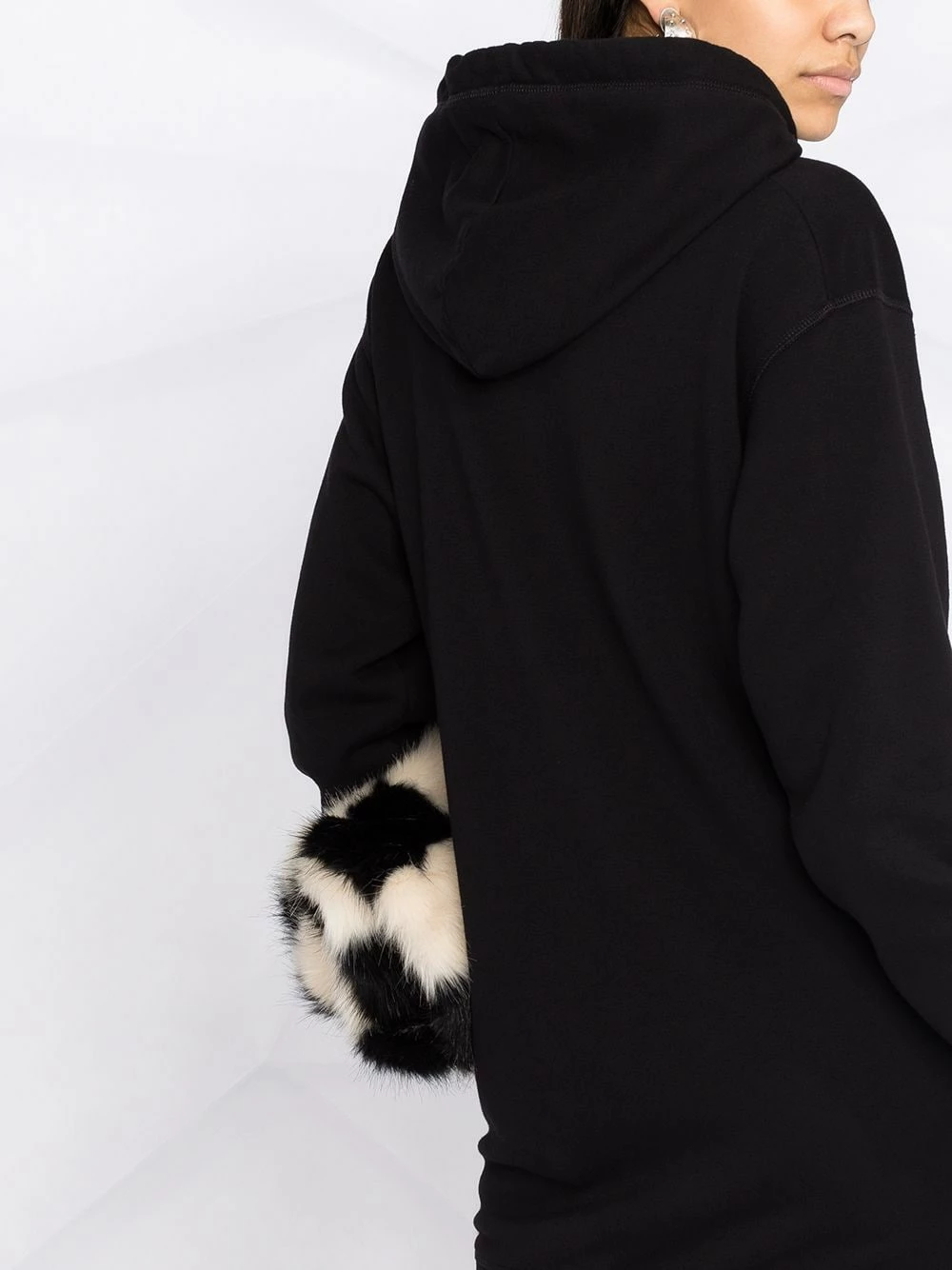 Capuche à lien de resserrage, manches longues, poignets nervurés, imprimé monogrammé, coupe courte. Couleur : Noir. Matière : coton.