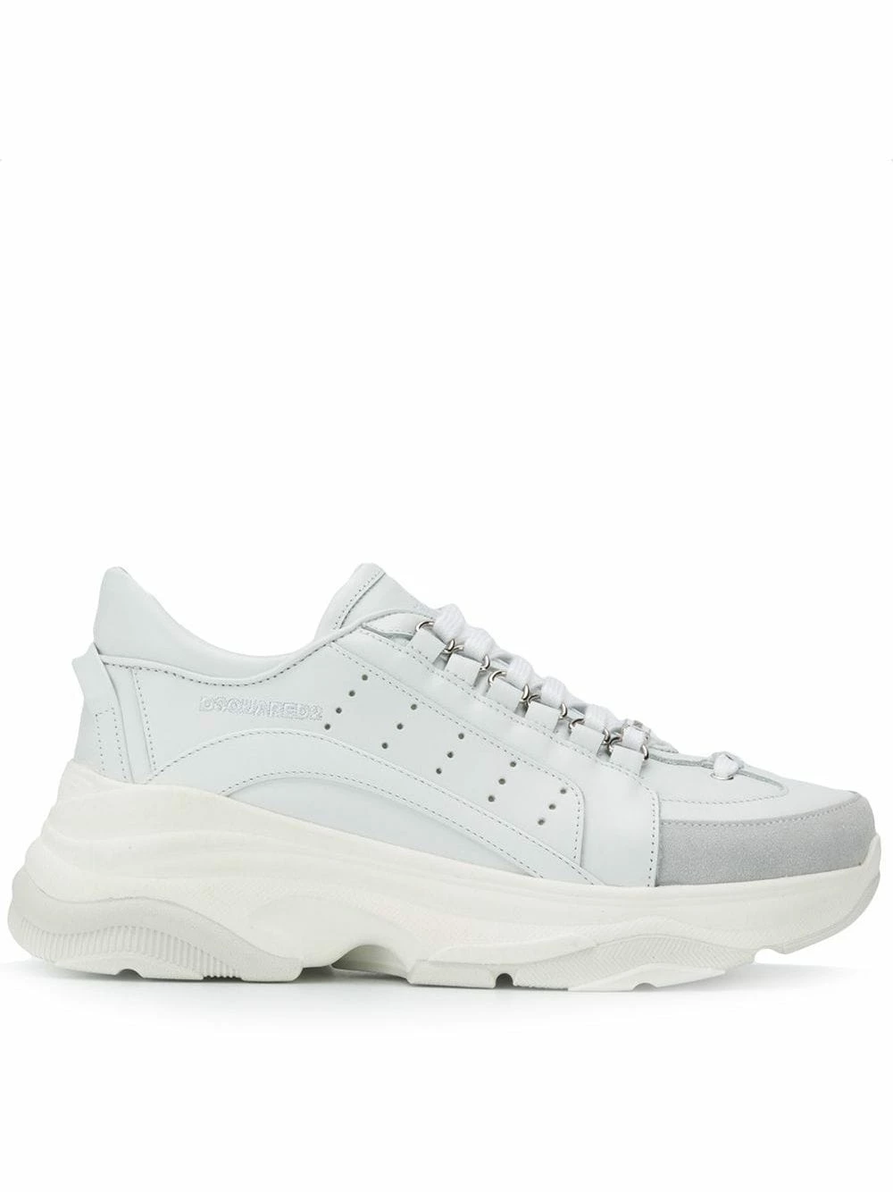 Baskets à semelle épaisse Dsquared2 avec bout rond, semelle plate en caoutchouc, fermeture à lacer sur le devant et semelle intérieure à logo.