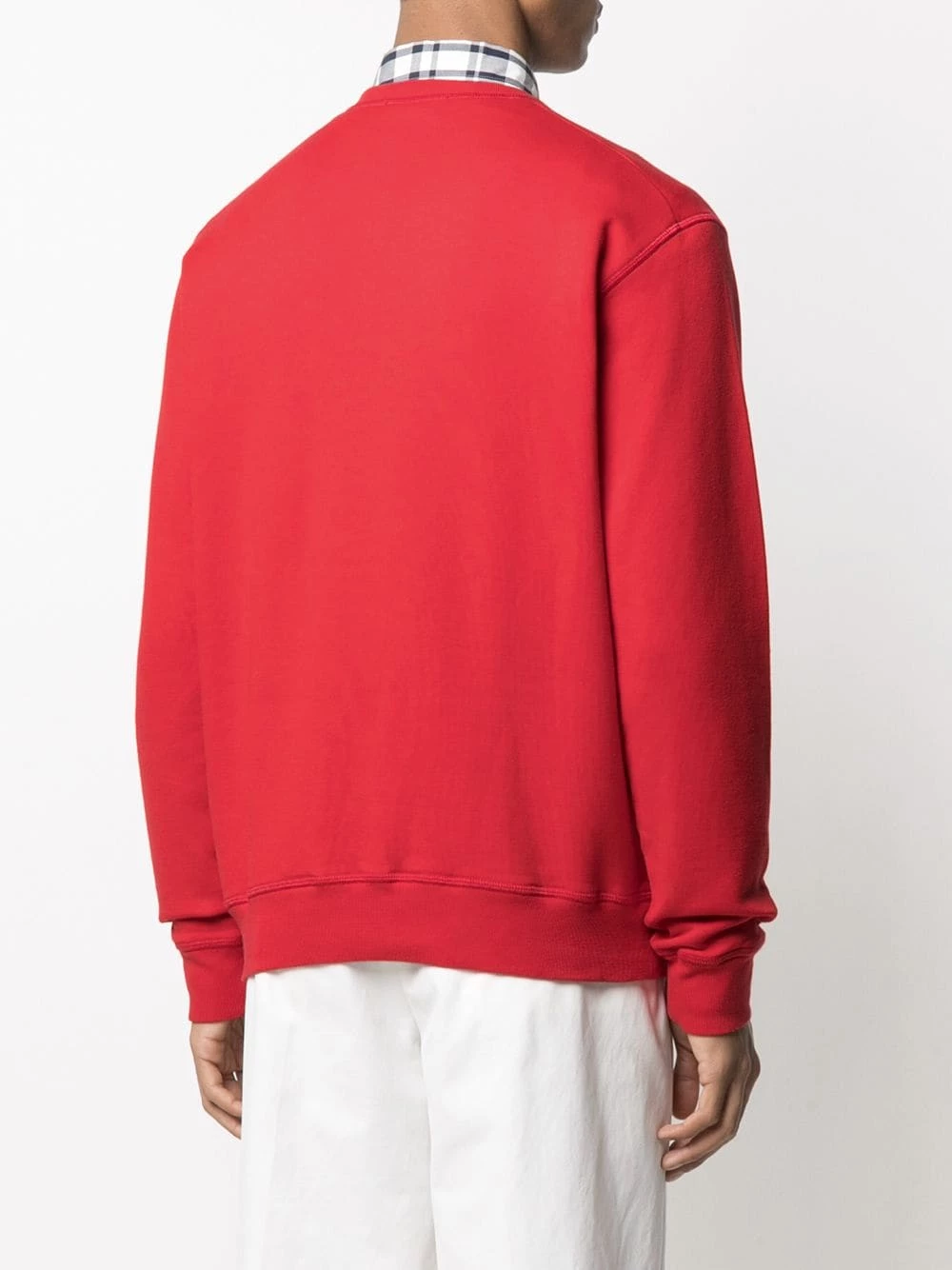 Encolure ronde, manches longues, poignets nervurés, logo imprimé à la poitrine. Couleur : rouge. Matière : coton.