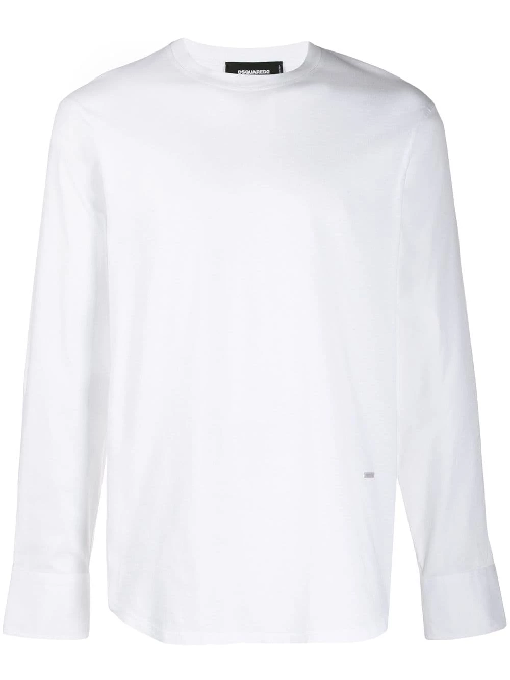 T-shirt à plaque logo en coton Dsquared2 avec encolure ronde, manches longues et forme détendue. Couleur : blanc.